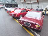 Considered to be part of the Beta family, though there is an awful lot about the car that is very different from the front wheel drive models was the MonteCarlo, no fewer than eight examples of which were displayed. First conceived in 1969, with a a final design completed by 1971 by Paolo Martin at Pininfarina, what was initially known as the Fiat X1/8 Project, was originally designed as Pininfarina’s contender to replace Fiat’s 124 Coupe, but it lost out to Bertone’s cheaper design, which became the Fiat X1/9. Rather than scrap the proposal completely, it was developed further, when Fiat commissioned Pininfarina to build a 3.0 litre V6 mid-engined sports car. An X1/8 chassis was used as the start point, and developed for the first time in-house by Pininfarina and not based on any existing production car. Due to the 1973 Oil Crisis, the project was renamed X1/20 and updated to house a 2.0 litre engine. The first car to be made out of the X1/20 Project was the Abarth SE 030 in 1974. The project was passed to Lancia, and the road car was launched at the 1975 Geneva Motor Show as the Lancia Beta MonteCcarlo. It was the first car to be made completely in-house by Pininfarina. Lancia launched the MonteCarlo as a premium alternative to the X1/9, with the 2 litre twin cam engine rather than the X1/9’s single cam 1300. Both used a similar, based on the Fiat 128, MacPherson strut front suspension and disc brakes at both front and rear. Lancia Beta parts were limited to those from the existing Fiat/Lancia standard parts bin, the transverse mount version of the Fiat 124’s twin cam engine and the five speed gearbox and transaxle. MonteCarlos were available as fixed head “Coupés” and also as “Spiders” with solid A and B pillars, but a large flat folding canvas roof between them. Sales were slow to get started, and it soon became apparent that there were a number of problems with a reputation for premature locking of the front brakes causing particular alarm. Lancia suspended production in 1979 whilst seeking a solution, which meant that the car was not produced for nearly two years. The second generation model, known simply as MonteCarlo now, was first seen in late 1980. The braking issue was addressed by removing the servo, as well as few other careful mechanical tweaks. The revised cars also had glass panels in the rear buttresses, improving rear visibility somewhat, and there was a revised grille. In the cabin there was a new three spoke Momo steering wheel in place of the old two spoke one, as well as revamped trim and fabrics. The engine was revised, with a higher compression ratio, Marelli electronic ignition and new carburettors which produced more torque. It was not enough for sales to take off, and the model ceased production in 1982, although it took quite a while after that to shift all the stock. Just under 2000 of the Phase 2 cars were made, with 7798 MonteCarlos made in total.