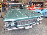 For the 1957 model year, the Imperial received its own platform, setting it apart from any other division of Chrysler and shared the all-new “Forward Look” appearance, showing many styling features introduced with the concept car Chrysler Norseman. Imperials during this period were substantially wider, both inside and out, than other Chrysler Corporation products, with front and rear shoulder room equal to 64.0 in (1,626 mm) and 62.0 in (1,575 mm) respectively. The front seat shoulder room measurement remains an unsurpassed record for Imperial and would remain the record for any car until the 1971–1976 GM full-size models. Exterior width reached a maximum of 81.7 in (2,075 mm) for 1961–1963, which remains the record for the widest non-limousine American car. After Lincoln downsized for 1961, this generation of Imperial had no real competitor for the title of largest car for the remainder of its decade-long lifespan. The Imperial Crown convertible was listed at $5,598) and 1,167 were manufactured. Unlike the rest of the Chrysler Corporation makes (Chrysler, De Soto, Dodge, and Plymouth) that began unibody construction for 1960, the Imperial retained separate full perimeter frames for rigidity through the 1966 model year. These substantial frames had a box cross-section with strong crossmembers connecting the frame. The convertible had extra strength built into its crossmembers that formed an “X”. The driveshaft passed through a hole in the “X” frame. The parking brake gripped the driveshaft and was not connected to the rear drum brakes prior to the 1963 model year. The Imperial, and all Chrysler-built cars, incorporated “Torsion-Aire” suspension for 1957. This was an indirect-acting, torsion-bar front suspension system that reduced unsprung weight and shifted the car’s center of gravity downward and rearward. Torsion-bar suspension on the front combined with multi-leaf springs on the rear provided a smoother ride and improved handling. Imperial’s handling was better than its competitors of the time due to its stiffness from the torsion-bars combined with a thick anti roll bar in the front. Pillarless hardtops, in both two and four-door configurations, received the Southampton designation. The cars received annual changes. Seen here was a 1961 model. The 1961 model year brought a new front end design with free-standing headlights on short stalks in cut-away front fenders (a classical throwback favoured by Virgil Exner, used commonly in the 1930s Chryslers. He would continue his look with the modern Stutz), and the largest tailfins ever. Inside, the Imperial gained an improved dash layout with an upright rectangular bank of gauges. The pillared four-door sedan was cancelled and would not return until the 1967 model year. With the downsizing of Lincoln, at 227.1 inches (later increased to 227.8 inches in 1963), the Imperial would once again be the longest non-limousine car made in America through 1966. Sales fell to 12,258, the result of bizarre styling and continued poor quality control while the retail price for the LeBaron was US$6,428.