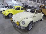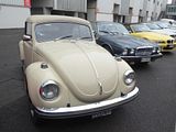 As well as the regular saloon there were a number of examples of the Beetle Cabrio. These were produced by Karmann at their Osnabruck facility. Production of an open-topped Type 1 Beetle Cabriolet began in 1949. The convertible was more than a Beetle with a folding top. To compensate for the strength lost in removing the roof, the sills were reinforced with welded U-channel rails, a transverse beam was fitted below the front edge of the rear seat cushion, and the side cowl-panels below the instrument panel were double-wall. In addition, the lower corners of the door apertures had welded-in curved gussets, and the doors had secondary alignment wedges at the B-pillar. The top was cabriolet-style with a full inner headliner hiding the folding mechanism and crossbars. In between the two top layers was 1 in (25 mm) of insulation. The rear window was tempered safety glass, and after 1968, heated. Due to the thickness of the top, it remained quite tall when folded. To enable the driver to see over the lowered top, the inside rearview was mounted on an offset pivot. By twisting the mirror 180 degrees on a longitudinal axis, the mirror glass would raise approximately 2 in (5.1 cm). The convertible was generally more lavishly equipped than the sedan with dual rear ashtrays, twin map pockets, a visor vanity mirror on the passenger side, rear stone shields, and through 1969, wheel trim rings. Many of these items did not become available on other Beetles until the advent of the optional “L” (Luxus) Package of 1970. After a number of stylistic and technical alterations made to the Karmann cabriolet, corresponding to the many changes VW made to the Beetle throughout its history, the last of 331,847 cabriolets came off the production line on 10 January 1980.