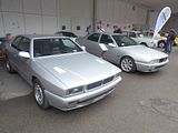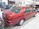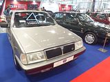 Replacing the Gamma was the Thema, Lancia’s luxury car based on the Tipo Quattro platform, one of four cars to do so, the others being the Alfa Romeo 164, Fiat Croma and Saab 9000. The Thema re-established Lancia as a high-quality luxury manufacturer with a galvanised steel chassis and rust protection that equalled or bettered that of its competitors. Build quality was higher than the Fiat Croma’s and on par with the Saab 9000, with which it shared a great deal of body engineering, including its doors. Lancia’s sales organisation, however, was poor in many markets and secondhand values for the car suffered. The first series was built between 1984 and 1988, and was available with 1995 cc 8 valve, twin-cam fuel injected or turbocharged engines or a 2849 cc V6. For most European markets a 2445 cc four-cylinder turbodiesel was also available, though this was not offered to UK buyers. Two of these cars, in 2 litre Turbo ie spec, which was the most popular among UK buyers, were on show here. For a while, the Thema changed little, but in 1986, a station wagon designed by Pininfarina was added to the range, though this was also never sold in the UK. 21,074 Thema station wagons were built. The second series Thema was presented at the Paris Motor Show in September 1988 with 16v 2.0 litre engines replacing the 2.0 litre 8v units increasing the power output of the injection version to 146 PS and the turbo to 205 PS. The diesel engine size increased marginally, to 2499 cc. The series two was then replaced by the facelifted third and last series, introduced at the Paris Motor Show in September 1992 and produced from 1992-1994. Production of the Thema ceased in 1994 when Lancia presented a replacement. the Kappa, a car that would not be sold in the UK.