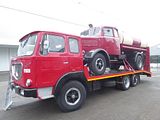 The Lancia Jolly was a light commercial vehicle produced between 1959 and 1963. In four years, 3011 units were produced. The low-loading Jolly was based on the third series of the Appia passenger car, and was first presented alongside it in early 1959. Its predecessors had used the Appia bodywork, including the front doors, but for the Jolly, Lancia decided to use a cab over design instead. It was available with van or pick-up bodywork. The Jolly was powered by a four-cylinder, 1,090 cc engine producing 36.5 hp. The maximum speed was 97 km/h (60 mph). It was 4,595 mm (180.9 in) long, 1,815 mm (71.5 in) wide, with a height of 1,902 mm (74.9 in). It weighed 1,500 kg (3,300 lb). An entirely different version with a bigger engine using Flavia mechanicals, called the Super Jolly, replaced it in 1964.[3]