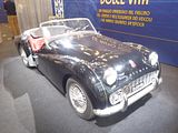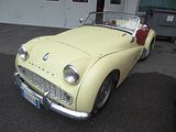 Launched in 1955, the TR3 was an evolution of the TR2 and not a brand new model. It was powered by a 1991 cc straight-4 OHV engine initially producing 95 bhp, an increase of 5 hp over the TR2 thanks to the larger SU-H6 carburettors fitted. This was later increased to 100 bhp at 5000 rpm by the addition of a “high port” cylinder head and enlarged manifold. The four-speed manual gearbox could be supplemented by an overdrive unit on the top three ratios, electrically operated and controlled by a switch on the dashboard. In 1956 the front brakes were changed from drums to discs, the TR3 thus becoming the first British series production car to be so fitted. The TR3 was updated in 1957, with various changes of which the full width radiator grille is the easiest recognition point and the facelifted model is commonly referred to as the Triumph “TR3A”, though unlike the later TR4 series, where the “A” suffix was adopted, the cars were not badged as such and the “TR3A” name was not used officially, Other updates included exterior door handles, a lockable boot handle and the car came with a full tool kit as standard (this was an option on the TR3). The total production run of the “TR3A” was 58,236. This makes it the third best-selling TR after the TR6 and TR7. The TR3A was so successful that the original panel moulds eventually wore out and had to be replaced. In 1959 a slightly modified version came out that had raised stampings under the bonnet and boot hinges and under the door handles, as well as a redesigned rear floor section. In addition, the windscreen was attached with bolts rather than the Dzus connectors used on the early “A” models. Partly because it was produced for less time, the original TR3 sold 13,377 examples, of which 1286 were sold within the UK; the rest being exported mainly to the USA.