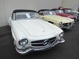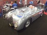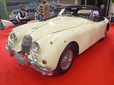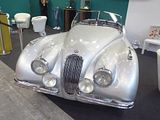 Jaguar stunned the world with the XK120 that was the star of the Earls Court Motor Show in 1948. Seen in open two seater form, the car was a testbed and show car for the new Jaguar XK engine. The display car was the first prototype, chassis number 670001. It looked almost identical to the production cars except that the straight outer pillars of its windscreen would be curved on the production version. The roadster caused a sensation, which persuaded Jaguar founder and design boss William Lyons to put it into production. Beginning in 1948, the first 242 cars wore wood-framed open 2-seater bodies with aluminium panels. Production switched to the 112 lb heavier all-steel in early 1950. The “120” in the name referred to the aluminium car’s 120 mph top speed, which was faster with the windscreen removed. This made it the world’s fastest production car at the time of its launch. Indeed, on 30 May 1949, on the empty Ostend-Jabbeke motorway in Belgium, a prototype XK120 timed by the officials of the Royal Automobile Club of Belgium achieved an average of runs in opposing directions of 132.6 mph with the windscreen replaced by just one small aeroscreen and a catalogued alternative top gear ratio, and 135 mph with a passenger-side tonneau cover in place. In 1950 and 1951, at a banked oval track in France, XK120 roadsters averaged over 100 mph for 24 hours and over 130 mph for an hour, and in 1952 a fixed-head coupé took numerous world records for speed and distance when it averaged 100 mph for a week. Roadsters were also successful in racing and rallying. The first production roadster, chassis number 670003, was delivered to Clark Gable in 1949. The XK120 was ultimately available in two open versions, first as an open 2-seater described in the US market as the roadster (and designated OTS, for open two-seater, in America), and from 1953 as a drophead coupé (DHC); as well as a closed, or fixed head coupé (FHC) from 1951. A smaller-engined version with 2-litres and 4 cylinders, intended for the UK market, was cancelled prior to production.