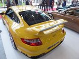 In August 2022, Porsche unveiled the 992 GT3 RS. A further evolution of other GT3 Porsches, it represents the highest track performance of their road-legal 911 lineup. It features a dramatically improved aerodynamic profile compared to the 992 GT3, resulting in 860 kilograms-force (8.4 kN) of downforce at 285 km/h, a two-fold increase over the 991.2 GT3 RS, and 409 kilograms-force (4.01 kN) of downforce at 200 km/h. The rear wing features a static portion and an active portion, which can open and close automatically based on vehicle data, or manually with a button fitted to the steering wheel, inspired by Formula 1’s Drag Reduction Systems (DRS). Its engine produces 525 PS at 8500 rpm and 465 of Nm torque at 6300 rpm. The car has a redline of 9000 rpm (same as the GT3 done by its naturally aspirated flat-six engine). The curb weight of the car in European specification is 1450 kg, and it’s capable of achieving 100 km/h in 3.2 seconds, and 200 km/h in 10.6 seconds. The top speed stated by Porsche is 296 km/h (184 mph).[36] The GT3 RS set a 20,600m Nürburgring Nordschleife lap time of 6:44:848 minutes and a 20,832m lap time of 6:49:328 minutes. In February 2023, Porsche revealed 911 GT3 RS Carrera RS Tribute Edition. This edition is a tribute to 1973 911 Carrera RS 2.7. The car has white exterior with Python Green rims, decals and badges. Behind the RS badges on the rear wing there is a tiny green American flag. The interior is also stitched in Python Green. These were only made for US market, 150 units were produced.