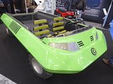 At the Brussels Motor Show in January 1972, Bertone presented the design known as GO. This was a prototype for a hybrid between a pick-up and leisure vehicle. The design was reworked in a more sporty key on the BMW Pickster in 1998. The plastic bodywork was barchetta-style, while the light side lines give the vehicle a linear look. The engine, a three-cylinder Suzuki motorcycle engine, was mounted along the left side, leaving room on the right for the radiator. Finished in crisp green with highly polished wheel trims. This low-level fun car was supposed to take your skis, boots, mountain bikes and even a snowmobile to the edge of the action, and then back to the chalet for a much-needed gluwein as the sun went down. Over the driver’s shoulder was a three-cylinder Suzuki 750 motorbike engine with Bertone’s own chain-driven gearbox boasting five forward and five reverse ratios. Over the passenger’s shoulder, the radiator and a luggage box. There were no doors or windscreen, but you could lower a ramp at the back to unload your snowmobile, using pulleys driven by the steering wheel. Prefer the water? No problem: just attach an outboard to the back to turn the Go into a boat. Bertone show the latest idea in Beach Buggies — the Go, which is a small truck on tracked tyres, specially equipped for transporting a trials motorcycle. There are two slat-type seats at the front, and a wind-up windscreen. Want to tow your motorcycle to the back country? This Italian Bertone vehicle does it. The tailgate becomes a ramp. Want to take a spin on the lake? Clamp an outboard to the rear door and take off. A three-cylinder Suzuki engine is built into the left side. Radiator is on the right.