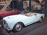 The Lancia D24 was a sports racing car introduced by Lancia in 1953, and raced in the 1953 and 1954 seasons. It kept the overall layout of its predecessor the D23—that is a multi-tubular frame chassis, double wishbones/De Dion suspension, transaxle transmission and a barchetta body—but had a large 3,284 cc V6 engine. The V6 produced 265 hp, giving the car a top speed of 260 km/h (162 mph). Some of the D24’s most significant overall victories are those by Juan Manuel Fangio in the 1953 Carrera Panamericana, by Alberto Ascari in the 1954 Mille Miglia, and by Piero Taruffi in the 1954 Targa Florio and Giro di Sicilia. In 1955, the President of Lancia presented a D24 to President Juan Perón of Argentina who raced it nationally in the blue and yellow national livery. It was returned to Italy in the 1980s and restored by the Count Vittorio Zanon. This is one of just two D24s in existence; the other is this one.