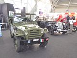 The Pinzgauer is a family of high-mobility all-terrain 4WD (4×4) and 6WD (6×6) military utility vehicles. The vehicle was originally developed in the late 1960s and manufactured by Steyr-Daimler-Puch of Graz, Austria, and was named after the Pinzgauer, an Austrian breed of cattle. They were most recently manufactured at Guildford, Surrey, England, by BAE Systems Land & Armaments. It was popular amongst military buyers, and continued in production there throughout the rest of the century. In 2000 the rights were sold to Automotive Technik Ltd (ATL) in the UK. ATL was acquired by Stewart & Stevenson Services, Inc. in 2005. In May 2006, Stewart & Stevenson became a subsidiary of the aerospace and defence group Armor Holdings, Inc. In 2007 Armor Holdings was acquired by BAE Systems plc, who discontinued UK production of the Pinzgauer, which was proving to be vulnerable to mines and improvised explosive devices in Afghanistan. Production ceased around 2009. Development work (done in the UK) on a planned Pinzgauer II was evaluated by a BAE subsidiary in Benoni, Gauteng, South Africa, but no vehicle was ever made. Being both unarmed and unarmoured, the Pinzgauer was designed for mobility and general utility functions rather than combat or reconnaissance roles. The original prototype was developed around 1969 and production began in 1971, as successor of the Steyr-Daimler-Puch Haflinger 700 AP 4×4 light military multi purpose offroad vehicle. The Pinzgauer first generation model (710, 712) was produced until 2000 by Steyr-Daimler-Puch in the city of Graz, Austria. It was, and is, in use in many armies around the world, like Austria, Switzerland, the United Kingdom, Saudi Arabia, Thailand, Albania, and Bolivia. When Austro-Canadian millionaire Frank Stronach took over the shareholder majority of Steyr-Daimler-Puch offroad vehicles, the rights to build Steyr’s Pinzgauers were moved to Automotive Technik Ltd; and subsequently to a branch of BAE Systems. As of 2009, production of Pinzgauers seems to have stalled. The Graz plant has been building the Mercedes-Benz G Wagon / Puch G SUVs / offroad cars. The Pinzgauer is one of the most capable all-terrain vehicles ever made. While not as fast on-road (110 km/h (68 mph)) as an American Humvee, it can carry more troops, and move faster over rough trails. Even the smaller 710M can carry 10 people or two NATO pallets. Both the 4×4 and 6×6 models can tow 5,000 kilograms (11,023 lb) on road; and 1,500 kilograms (3,307 lb) or 1,800 kilograms (3,968 lb), respectively, off-road. It has a range of over 400 kilometres (249 mi) on one tank of fuel, or nearly 700 kilometres (435 mi) with the optional 125 litre tank. The first generation Pinzgauer is available in both four-wheel drive (4×4) (model 710) and six-wheel drive (6×6) (model 712) versions. The Pinzgauer was designed to be reliable and easy to fix; it is shipped with an air-cooled petrol engine with dual-Zenith 36 mm NDIX carburetors. The engine in the Pinzgauer was specifically designed for the vehicle; it has more than one oil pump so that the engine will not get starved of oil no matter how the vehicle is oriented. The Pinzgauer has a chassis design which contributes to its high mobility. It has a central tube chassis with a transaxle which distributes the weight more evenly, and keeps the centre of gravity as low as possible. The differentials are all sealed units and require minimal additional lubrication. The Pinzgauer also has portal axles like the Unimog to provide extra clearance over obstacles. The 710 4×4 was the more popular variant, but the Pinzgauer was designed to have a very capable 6×6 configuration from the start. The rear suspension on the back of the 6×6 712 is designed to provide maximum traction in the most demanding circumstances along with increasing its towing, load carrying, and off-road abilities. During production from 1971 until 1985, 18,349 first-generation 710s and 712s were produced and sold to both civilian and military customers.