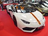 The Lamborghini Huracán (Spanish for “hurricane”; [uɾaˈkan]) is a sports car replacing the previous V10 offering, the Gallardo. The Huracán was revealed online in December 2013, making its worldwide debut at the 2014 Geneva Auto Show, and was released in the market in the second quarter of 2014. The Huracán’s name (huracán being the Spanish word for hurricane) is inspired by a Spanish fighting bull. Historic Spanish fighting bulls have traditionally provided the names of most Lamborghini car models. Huracán was a bull known for its courage that fought in 1879. The Huracán maintains the 5.2-litre naturally aspirated Audi/Lamborghini V10 engine with an additional 0.2 litres, compared to the Gallardo, tuned to generate a maximum power output of 602 bhp/610 PS. To ensure its balance and performance, the car is mid-engined. The engine has both direct fuel injection and multi-point fuel injection. It combines the benefits of both of these systems; it is the first time this combination is used in a V10 engine. To increase its efficiency, the Huracán’s engine also includes a start-stop system. The firing order of the engine is 1, 6, 5, 10, 2, 7, 3, 8, 4, 9. This is printed on a metal plate on the top of the engine, as with all other Lamborghini models. The drag coefficient of Cd=0.39 was undisclosed until 2021. The LP 610-4 designation comes from the car having 610 PS and four-wheel drive, while LP stands for “Longitudinale Posteriore”, which refers to the longitudinal mid-rear engine position. Changes from the Gallardo include full LED illumination, a 12.3 inch full-colour TFT instrument panel, fine napa leather and Alcantara interior upholstery, redesigned dashboard and central tunnel, Iniezione Diretta Stratificata (IDS, essentially an adapted version of parent Audi’s Fuel Stratified Injection) direct and indirect gasoline injections, engine Stop & Start technology, EU6 emissions regulation compliance, Lamborghini Doppia Frizione (LDF) 7-speed dual-clutch transmission with 3 modes (STRADA, SPORT and CORSA), 20-inch wheels, carbon-ceramic braking system, optional Lamborghini Dynamic Steering variable steering system and MagneRide electromagnetic damper control. The main competitors of the Huracán include the McLaren 650S (as well as the 720S), the Audi R8, the Ferrari 458 Speciale and the 488 GTB. Extra options that increase the price of the car include interior enhancements, special paint schemes, improved suspension, and a lifting system, as well as multiple components optionally available in carbon fibre, rather than aluminium. The convertible variant of the Huracán LP 610-4 was revealed at the Frankfurt Motor Show on 14 September 2015. The 5.2-litre naturally-aspirated V10 engine is the same as the coupé and generates a maximum power output of 602 bhp/610 PS. Acceleration from 0 to 100 km/h (62 mph) takes 3.4 seconds and the top speed is 323 km/h (201 mph). It has the same 7-speed Lamborghini Doppia Frizione (LDF) dual-clutch transmission as that of the coupé. The Spyder has a dry weight of 1,542 kg (3,400 lb) which is 120 kg (265 lb) more than the coupé due to chassis reinforcing components. The Spyder has a CO2 emission of about 280 g/km. Unveiled at the 2016 Geneva Motor Show, the Huracán LP 580-2 is a lower cost derivative of the Huracán LP 610-4 that differs mostly in having the 5.2 L V10 engine detuned to 572 bhp/580 PS and 533 Nm (393 lb/ft) of torque along with having a rear wheel drive drivetrain instead of the all-wheel drive drivetrain found in the standard Huracán. Lamborghini claims the car will accelerate from 0–100 km/h (0–62 mph) in 3.4 seconds and 0–200 km/h (0–124 mph) in 10.1 seconds. The top speed is claimed to be as high as 320 km/h (199 mph). It also features slight visual differences to the standard variant of the car – with a different front fascia and larger air vents at the rear of the car for improved brake cooling. The seven-speed dual-clutch transmission is the same as used in the standard LP 610–4. The base level LP 580-2 costs US$201,100, about US$40,000 less than the base level LP 610–4. A convertible variant of the Huracán LP 580-2 was unveiled at the Los Angeles Auto Show on 16 November 2016. The 5.2-litre naturally-aspirated V10 engine is the same as in the coupé, and generates a maximum power output of 572 bhp/580 PS. 0 to 100 km/h (62 mph) takes 3.6 seconds and the top speed is 320 km/h (199 mph). A track oriented variant of the Huracán, called the Performante, was unveiled at the 2017 Geneva Motor Show. The Performante underwent various exterior changes with the most noticeable being the front and rear bumpers. Carbon fibre is used for the bumpers and the side skirts. An adjustable carbon fibre rear wing has been added to increase downforce. The position of the exhaust has also been changed, and is now just a bit above the rear diffuser. The interior also underwent noticeable changes, now sporting new seats and a new digital speedometer (similar to that of the Aventador SV’s speedometer). The Performante’s 5.2-litre V10 has been tuned to have a power output of 631 bhp/640 PS at 8,000 rpm and 601 Nm (443 lb/ft) of torque at 6,500 rpm. The weight has also decreased by 40 kg (88 lb), courtesy of the forged aluminium and forged carbon fibre body components (first used in the construction of the Sesto Elemento). All the new aero components on the car have active aerodynamic capability and help keep the car stable at high speeds. The Performante is capable of accelerating from 0–100 km/h (0–62 mph) in 2.9 seconds, 0–200 km/h (0–124 mph) in 8.9 seconds. It also has a theoretical top speed of 325 km/h (200 mph). The car has been stiffened by 10% with new springs, roll bars, and radial axial arm bushings. The magnetorheological suspension has been reworked to give a driver a serious track experience. The Lamborghini Dynamic Steering has been re-calibrated. The Performante utilises Lamborghini’s new A
