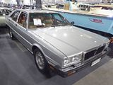 The third generation car to bear the Quattroporte name (Tipo AM 330) was developed under the Alejandro de Tomaso-GEPI ownership. After the brief parenthesis of the Citroen-era front-wheel drive Quattroporte II, the third generation went back to the classic formula of rear-wheel drive and large Maserati V8 engine. It was designed by Giorgetto Giugiaro. A pre-production Quattroporte was introduced to the press by Maserati president Alejandro de Tomaso on 1 November 1976, in advance of its début at the Turin Motor Show later that month. It was only three years later though, in 1979, that the production version of the car went on sale. Initially “4porte” badging was used, changed in 1981 to Quattroporte. Two versions of the V8 engine were available: a 4,930 cc one producing 280 PS and a smaller 4,136 cc engine producing 255 PS which was phased out in 1981. The interior was upholstered in leather and trimmed in briar wood. The Quattroporte III marked the last of the hand-built Italian cars; all exterior joints and seams were filled to give a seamless appearance. From 1987 the Royale superseded the Quattroporte, as a built-to-order ultra-luxury version of the Quattroporte. It adopted a higher compression 4.9-litre engine, putting out 300 PS. Besides the usual leather upholstery and veneer trim, the passenger compartment featured a revised dashboard with analogue clock, four electrically adjustable seats, retractable veneered tables in the rear doors and a mini-bar. Visually the Royale was distinguished by new disc-shaped alloy wheels and silver-coloured side sills. De Tomaso announced a limited run of 120 Royales, but when production ceased in 1990 only 53 of them had been made. In all, including the Royale, 2,155 Quattroporte IIIs were produced.