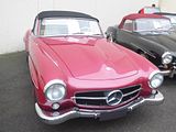 The A110 was introduced as an evolution of the A108. Like other road-going Alpines, the 1961 A110 used many Renault parts – including engines. But while the preceding A108 was designed around Dauphine components, the A110 was updated to use R8 parts. Unlike the A108, which was available first as a cabriolet and only later as a coupé, the A110 was delivered first with “Berlinetta” bodywork and then as a cabriolet. The main visible difference with the A108 coupé was a restyling of the rear body to fit the larger engine, which gave the car a more aggressive look. Like the A108, the A110 featured a steel backbone chassis with fibreglass body. The A110 was originally available with 1.1 litre R8 Major or R8 Gordini engines. The Gordini engine delivered 95 hp at 6,500 rpm. The A110 achieved most of its fame in the early 1970s as a victorious rally car. After winning several rallies in France in the late 1960s with iron-cast R8 Gordini engines the car was fitted with the aluminium-block Renault 16 TS engine. With two dual-chamber Weber 45 carburettors, the TS engine delivered 125 hp at 6,000 rpm. This allowed the production 1600S to reach a top speed of 210 km/h (130 mph). The longer wheelbase 2+2 Alpine GT4, originally considered a version of the A108, was updated with A110 engines and mechanicals, now being marketed as the “A110 GT4”. The car reached international fame during the 1970–1972 seasons when it participated in the newly created International Championship for Manufacturers, winning several events around Europe and being considered one of the strongest rally cars of its time. Notable performances from the car included victory in the 1971 Monte Carlo Rally with Swedish driver Ove Andersson. With the buy-out of Alpine by Renault complete, the International Championship was replaced by the World Rally Championship for 1973, at which time Renault elected to compete with the A110. With a team featuring Bernard Darniche, Jean-Pierre Nicolas and Jean-Luc Thérier as permanent drivers and “guest stars” like Jean-Claude Andruet (who won the 1973 Monte Carlo Rally) the A110 won most races where the works team was entered, making Alpine the first World Rally Champion. Later competition-spec A110s received engines of up to 1.8 litres. As well as being built at Alpine’s Dieppe factory, A110 models were constructed by various other vehicle manufacturers around the world. The Alpine A110 was produced in Mexico under the name “Dinalpin”, from 1965 to 1974, by Diesel Nacional (DINA), which also produced Renault vehicles. The Alpine A110 was also produced in Bulgaria under the name “Bulgaralpine”, from 1967 to 1969, by a cooperative formed between SPC Metalhim and ETO Bulet, whose collaboration also resulted in the production of the Bulgarrenault. In 1974 the mid-engined Lancia Stratos, the first car designed from scratch for rally racing, was operational and homologated. At the same time, it was obvious that the tail-engined A110 had begun reaching the end of its development. The adoption of fuel injection brought no performance increase. On some cars, a DOHC 16-valve head was fitted to the engine, but it proved unreliable. Chassis modification, like the use of an A310 double wishbone rear suspension, homologated with the A110 1600SC, also failed to increase performance. On the international stage, the Stratos proved to be the “ultimate weapon”, making the A110, as well as many other rally cars, soon obsolete. The A110 is still seen in events such as the Rallye Monte-Carlo Historique and there was a nice example here.