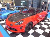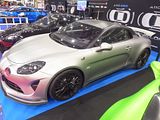 The Alpine A110 is a rear mid-engine, rear-wheel-drive sports car introduced by French car manufacturer Alpine at the 87th Geneva International Motor Show in March 2017. Deliveries began in late 2017 for Continental European markets and in 2018 for the UK, Japan and Australia. Both its name and design refer back to the original Alpine A110 that was produced from 1961 to 1977. Based on an all-aluminium construction, the A110 is powered by a Nissan-derived 1.8-litre turbocharged gasoline direct injection 4 valves per cylinder inline-four engine mated to a 7-speed dual-clutch transmission manufactured by Getrag. Developed by Renault–Nissan and reworked by Alpine engineers, the engine has an output of 252 PS at 6,000 rpm and 320 Nm (236 lb/ft) of torque at 2,000–5,000 rpm. According to Alpine, the A110 can accelerate from 0 to 100 km/h (0 to 62 mph) in 4.5 seconds, and has an electronically limited top speed of 250 km/h (155 mph). The A110 was initially available in three trims: Pure, Première, and Legende. The Pure cars, the base trim, have 17-inch alloy wheels. The Première trim cars are technically the launch edition models limited to 1,955 units and were equipped with amenities such as forged alloy wheels, quilted leather Sabelt bucket sports seats, a reversing camera, and metallic blue exterior colour as standard. The Legende trim cars come with six-way adjustable sports seats, black or brown leather interior upholstery, an upgraded hi-fi sound system, and specially designed wheels exclusive to this trim. All of the three trims share the same powertrain and transmission. For the 2020 model year, The Pure trim level was replaced by the Alpine A110, with no other badging. The Légende was replaced by the Alpine A110 GT which employed the same engine as the A110 S.