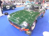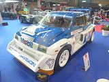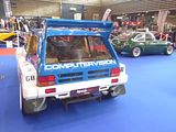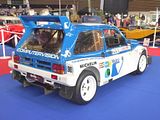 The MG Metro 6R4, a Group B rally car, was designed and built under contract by Williams Grand Prix (Formula 1) Engineering. Unlike other top rally cars at the time, it was naturally aspirated rather than turbocharged. Acceleration is zero to sixty in 2.5 seconds. The 6R4 is designed with a normally aspirated V6 engine. It is basically a Rover V8 engine with 2 cylinders removed, along with some elements of the Cosworth DFV. The fuel injected engine, as well as the radiators, are mounted at the rear of the car where the back seats would be in a standard MG Metro. In this configuration, power was rated at 400 – 410 BHP from the factory, although this updated spec is closer to 450. The Clubman spec, a “homologation special” run of 200 cars with a single throttle body, was rated at 250 BHP. The 6R4 won one major rally, the 1986 Circuit of Ireland Rally. Just as developments were beginning to make the car successful, Group B rally cars were banned from competition in 1987 due to safety concerns. The 6R4 continues as a major force in rallycross and hill-climbing where its sheer brute force, light weight, and aerodynamics continue to make it a very competitive car.