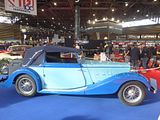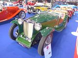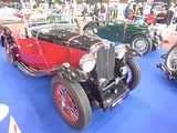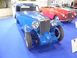 This one is an NA Airline. The MG N-type (also known as the MG Magnette) is a sports car that was produced by MG from October 1934 to 1936. The car was developed from the K-Type and L-Type but had a new chassis that broke away in design from the simple ladder type used on the earlier cars of the 1930s being wider at the rear than the front and with the body fitted to outriggers off the main frame. The engine was a further development of the 1271 cc 6-cylinder KD series overhead camshaft engine used in the K-type and originally used in the 1930 Wolseley Hornet. Modifications were made to the cylinder block and head and fitted with twin SU carburettor. It produced 56 bhp at 5500 rpm, a near 25% improvement. Drive was to the rear wheels through a four-speed non-synchromesh gearbox. The car had a wheelbase of 96 inches (2439 mm) and a track of 45 inches (1143 mm). Semi elliptic leaf springs, wider and longer than those used on previous cars, were fitted all round and the body was mounted to the chassis using rubber pads. The factory-supplied body was new and taller than on earlier cars, the doors were rear hinged and featured cut-away tops. The slab type fuel tank at the rear which had featured on earlier models was no longer seen on the N-Type, being hidden in the tail. In addition to the solid colour factory options, also offered were two tone combinations. The darker colour was applied to the upper surfaces (bonnet, scuttle, rear deck and guards). As well as the open cars, an Airline Coupé model was also available but few were sold. Some cars were supplied in chassis form to outside coachbuilders including Allingham, (actually made by Carbodies) who made a 2/4-seater where the rear seats could be closed off by a removable deck to appear like a 2-seater, and Abbey. The NB, announced in 1935, had an updated body with lower lines and vertical slats on the radiator grille. The doors were now front hinged, better seats were fitted and the instruments re-arranged with the speedometer and tachometer now having separate dials. The factory supplied two tone color options were reversed, that is, the lighter color was on the upper surfaces. The Airline Coupé body was still available. The ND was a special model using unsold MG K2 bodies fitted to the N-Type chassis probably only available in 1934. The number made is uncertain as the model does not seem to have been officially listed. The NE was the competition variant built for the 1934 Tourist Trophy race. Lightweight 2-seat bodies were fitted and the engine was further tuned to give 68 bhp at 6500 rpm. In 1935 three of the cars were fitted with P-Type style bodies and formed the Musketeer racing team which with factory support gained considerable success in various trials.