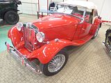 Whilst the TC, the first postwar MG and launched in 1945, was quite similar to the pre-war TB, sharing the same 1,250 cc pushrod-OHV engine, it had a slightly higher compression ratio of 7.4:1 giving 54.5 bhp at 5200 rpm. The makers also provided several alternative stages of tuning for “specific purposes”. It was exported to the United States, even though only ever built in right-hand drive. The export version had slightly smaller US specification sealed-beam headlights and larger twin rear lights, as well as turn signals and chrome-plated front and rear bumpers. The body of the TC was approximately 4 inches wider than the TB measured at the rear of the doors to give more cockpit space. The overall car width remained the same resulting in narrower running boards with two tread strips as opposed to the previous three. The tachometer was directly in front of the driver, while the speedometer was on the other side of the dash in front of the passenger. 10,001 TCs were produced, from September 1945 to Nov. 1949, more than any previous MG model. It cost £527 on the home market in 1947.