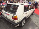 Joining it was an example of the Golf GTi Mark 2. VW had launched the second generation Golf in August of 1983, nearly 9 years after production of the first model to bear the name had begun. This time, a GTi version was included in the product plans from the start, and the new GTi was announced in May 1984. Like the regular Golf 2, it was almost 7″ longer than the Mark 1, with 3″ extra in the wheelbase and a 2″ wider track. It was also 10% heavier, but with significantly improved aerodynamics, resulting from attention to detail which included integrated gutters and flush glass as well as more rounded styling, the cd fell from 0.42 to 0.34. Initially it was powered by the same 1781cc fuel injected engine, but there were all round disc brakes and longer suspension travel improved the ride. Competitors came snapping at its heels, though, so after 2/5 years, VW responded by giving the car 24% more power, achieved by doubling the number of valves to 16. Lower stiffer suspension and bigger front brakes were also fitted, all of which restored the Golf GTi 16V to the top of the Hot Hatch pile. For most people that is, though the 8v car retained a following thanks to its broader torque spread. This less powerful car changed from a mechanical K-Jetronic injection system to a new Digifant electronic set up in 1987 at which point the front quarterlights were deleted, and a digital instrument pack became an option on the 16v car. Power steering became standard in late 1990 and the 8v gained the interior from the 16v model. Production ran through to February 1992, by which time the Mark 3 GTi was waiting in the wings. over 600,000 were built over an 8 year period, around 10% of all Mark 2 Golf production.