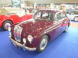 The Magnette Mark III announced 2 February 1959 was nearly identical to the Riley version (the 4/68) of the new Pinin Farina-designed midsize BMC saloon line. They both had truncated tail fins. All versions (including the Austin A55 Cambridge Mark II, Morris Oxford V and Wolseley 15/60) were produced by the British Motor Corporation (BMC). The car featured BMC’s 1489 cc B type engine but, in the MG Magnette III (and its Riley sibling), performance was enhanced by fitting twin S.U. H.D.4 carburettors. The interior featured a walnut veneer facia panel, door cappings and leather upholstery as well as safety glass windows. A Mark III was tested by The Motor magazine in 1959. They recorded a top speed of 85.5 mph (137.6 km/h), acceleration from 0-60 mph in 19.7 seconds and a fuel consumption of 31.4 miles per imperial gallon (9.0 L/100 km; 26.1 mpg‑US). The test car cost £1012 including taxes. 16,676 Mark IIIs were built. The Mark III was updated in 1961 as the Mark IV. A larger 1.6 L (1622 cc) B-Series engine, with capacity increased by increasing the bore to 76.2 mm, was fitted, and the car had a longer wheelbase and wider track. To improve handling anti-roll bars were fitted front and rear. From the outside, the Mark IV was almost identical to the Mark III, apart from the remodelled and slightly less sharply pointed tailfins, a modification shared with its Riley sibling. Automatic transmission was offered as an option. The model continued to be listed through till May 1968 when the manufacturers announced that production had ceased with “no immediate replacement … contemplated”. 14,320 Mark IVs were built.