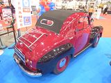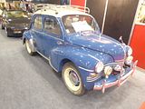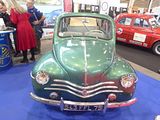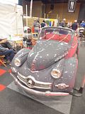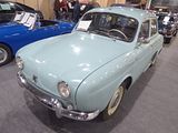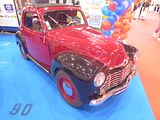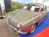 A couple of examples of the 4CV were on display. There seem to be several different accounts surrounding the conception of the car, one being that it was originally conceived and designed covertly by Renault engineers during the World War II German occupation of France, when the manufacturer was under strict orders to design and produce only commercial and military vehicles, in defiance of the direction of the boss, Louis Renault, whereas another version says that in 1940, he had directed his engineering team to “make him a car like the Germans’. Regardless, the truth is that work did go on during the war, with the occupying Germans who were keeping a watch on the company turning a blind eye to what came to be known as Project 106E. Certainly those working on the project were looking closely at the Volkswagen and their new car had a similar overall architecture to that, while recalling the modern designs of the fashionable front-engined passenger cars produced in Detroit during the earlier 1940s. The first prototype had only two doors and was completed in 1942, and two more prototypes were produced in the following three years. An important part of the 4CV’s success was due to the new methodologies used in its manufacture, pioneered by Pierre Bézier, who had begun his 42-year tenure at Renault as a tool setter, moving up to tool designer and then becoming head of the Tool Design Office. As Director of Production Engineering in 1949, he designed the transfer lines (or transfer machines) producing most of the mechanical parts for the 4CV. The transfer machines were high-performance work tools designed to machine engine blocks. While imprisoned during World War II, Bézier developed and improved on the automatic machine principle, introduced before the war by GM. The new transfer station with multiple workstations and electromagnetic heads (antecedents to robots), enabled different operations on a single part to be consecutively performed by transferring the part from one station to another. The 4CV was ultimately presented to the public and media at the 1946 Paris Motor Show and went on sale a year later. Volume production was said to have commenced at the company’s Billancourt plant a few weeks before the Paris Motor Show of October 1947, although the cars were in very short supply for the next year or so. Renault’s advertising highlighted the hundreds of machine-tools installed and processes adopted for the assembly of the first high volume car to be produced since the war, boasting that the little car was now no longer a prototype but a reality. On the 4CV’s launch, it was nicknamed “La motte de beurre” (the lump of butter); this was due to the combination of its shape and the fact that early deliveries all used surplus paint from the German Army vehicles of Rommel’s Afrika Korps, which were a sand-yellow colour. Later it was known affectionately as the “quatre pattes”, “four paws”.The 4CV was initially powered by a 760 cc rear-mounted four-cylinder engine coupled to a three-speed manual transmission. In 1950, the 760 cc unit was replaced by a 747 cc version of the “Ventoux” engine producing 17 hp. Despite an initial period of uncertainty and poor sales due to the ravaged state of the French economy, the 4CV had sold 37,000 units by mid-1949 and was the most popular car in France. Across the Rhine 1,760 4CVs were sold in West Germany in 1950, accounting for 23% of that country’s imported cars, and ranking second only to the Fiat 500 on the list. The car remained in production for more than another decade. Claimed power output increased subsequently to 21 hp as increased fuel octanes allowed for higher compression ratios, which along with the relatively low weight of the car (620 kg) enabled the manufacturers to report a 0–90 km/h (0–56 mph) time of 38 seconds and a top speed barely under 100 km/h (62 mph) The engine was notable also for its elasticity, the second and top gear both being usable for speeds between 5 and 100 km/h (3 and 62 mph); the absence of synchromesh on first gear would presumably have discouraged use of the bottom gear except when starting from rest. The rear mounting of the engine meant that the steering could be highly geared while remaining relatively light; in the early cars, only 2¼ turns were needed from lock to lock. The unusually direct steering no doubt delighted some keen drivers, but road tests of the time nonetheless included warnings to take great care with the car’s handling on wet roads. In due course, the manufacturers switched from one extreme to the other, and on later cars 4½ turns were needed to turn the steering wheel from lock to lock. Early in 1953, Renault launched a stripped-down version of the 4CV bereft of anything which might be considered a luxury. Tyre width was reduced, and the dummy grille was removed from the front of the car along with the chrome headlamp surrounds. The seats were simplified and the number of bars incorporated in the steering wheel reduced from three to two. The only colour offered was grey. The car achieved its objective of retailing for less than 400,000 Francs. With the Dauphine already at an advanced stage of development it may have made sense to try and expand the 4CV’s own market coverage downwards in order to open up a clearer gap between the two models which would be produced in parallel for several years, but reaction to the down-market 4 CV, branded as the “Renault 4CV Service”, must have disappointed Renault as this version disappeared from the Renault showrooms after less than a year. The poor sales performance may have been linked to the growing popularity of the Citroën 2CV: although at this stage powered by an engine of just 375 cc and offering sclerotic performance, the 2CV was bigger than the Renault and in 1952 came with a starting price of just 341,870 francs The 4CV’s direct replacement was the Dauphine, launched in 1956, but the 4CV in fact remain