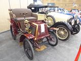 This is a 1901 Renault Type D, a small, four-passenger voiturette with a single-cylinder engine (either a De Dion-Bouton or Aster) and a three-speed gearbox. This model featured a more modern design than its predecessors, including a tilted steering column, and was known for its racing success in events like the Paris-Bordeaux race, which boosted its popularity. It was produced between 1898 and 1903 and is considered a “small family car”. It featured a single-cylinder, water-cooled engine with an output of 4.5 horsepower, offered with either a De Dion-Bouton or an Aster engine. There was a three-speed gearbox with a reverse gear. The body was a four-passenger convertible or rear-entrance tonneau body style. The car had a more modern appearance with a tilted steering column. Part of the Renault Voiturette series, produced from 1898 to 1903, the Type D contributed to Renault’s reputation through racing successes, particularly in the voiturette class.