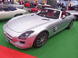 The SLS was the first Mercedes-Benz designed and built from scratch entirely by AMG. Upon its introduction at the 2009 Frankfurt Motor Show, the SLS AMG’s 571 PS (563 bhp) M159 engine was according to AMG “the world’s most powerful naturally aspirated production series engine” ever produced. The SLS AMG was designed by Mark Fetherston to be a modern 300SL Gullwing, adopting the feature of the gull-wing doors that swing open upwards on gas struts, and must be closed manually as AMG engineers decided against the 41 kg (90 lb) of additional weight that auto-closing systems would have added to the car. In case of a roll-over, the doors can be fully detached to allow the occupants to leave the vehicle. The SLS AMG Roadster was unveiled at the 2011 Frankfurt International Motor Show, as convertible variant, with conventional doors and three-layered fabric soft top (having a magnesium, steel and aluminium construction) which opens and closes in 11 seconds, and can be operated on the move at up to 50 km/h (31 mph). The roadster’s DIN kerb weight is 40 kg (88 lb) more than the SLS AMG Coupé. Certain reinforcements were made to the roadster in order to compensate for the loss of roof which includes side skirts with greater wall thicknesses and more chambers, a dashboard cross-member is supported against the windscreen frame and centre tunnel by additional struts, a curved strut between the soft top and the tank reinforces the rear axle, a reinforcing cross-member behind the seats to support the fixed roll-over protection system. An electric version of the car, the SLS AMG Electric Drive, was presented at the 2012 Paris Motor Show, but never entered production. The more focused Black Series, with more power and reduced weight did, though, following a presentation at the 2012 Los Angeles Show. Plenty of special editions of the car did, though, culminating in the 2014 SLS AMG GT Final Edition. The SLS was replaced by the somewhat cheaper (to build and hence to buy) AMG GT which remains in production.