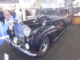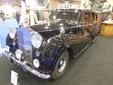 The Rolls-Royce Silver Wraith was the first post-war Rolls-Royce. It was made from 1946 to 1958 as only a chassis at the company’s Crewe factory, its former Merlin engine plant, alongside the shorter Bentley Mark VI. The Bentley was also available as a chassis for coachbuilders, but for the first time could be bought with a Rolls-Royce built Standard Steel body. The use of the name “wraith” coincided with the established tradition of naming models after “ghosts”. It was announced by Rolls-Royce in April 1946 as the 25/30 hp replacement for the 1939 Wraith in what had been their 20 hp and 20/25 hp market sector, that is to say Rolls-Royce’s smaller car. The size was chosen to be in keeping with the mood of post-war austerity. Even very limited production of the chassis of the larger car, the Phantom IV, was not resumed until 1950 and then, officially, only for Heads of State. Improvements announced were: chromium-plated cylinder bores for the engine; a new more rigid chassis frame to go with new independent front suspension; and a new synchromesh gearbox. Chassis lubrication was now centralised. The straight six-cylinder postwar engine, which had been briefly made for the aborted by war Bentley Mark V, replaced conventional overhead valve gear with an F-head configuration of overhead inlet valves and side exhaust valves and reshaped combustion chambers. There were new main and big-end bearings and a more efficient drive to the timing gear. To this prewar mix Rolls-Royce added chromed bores. Initially, this engine retained the Mark V’s capacity of 4,257 cc increased from 1951 to 4,566 cc and in 1955, after the introduction of the (standard wheelbase) Silver Cloud, to 4,887 cc for the remaining Silver Wraiths. The first cars had an entirely new 127 inch (3226 mm) wheelbase chassis which differed considerably from that of the pre-war Wraith and was much nearer rigid. It matched the new Bentley chassis but with an extra 7 inch section added to the centre. The new chassis had coil sprung independent front suspension, which required a very rigid chassis to function properly, and at the rear conventional semi-elliptic springs and live axle. The braking system was a hydro-mechanical hybrid of hydraulic fronts and mechanical rears using the mechanical servo similar to that of the pre-war cars. The last short-wheelbase cars were delivered in November 1953. The long, 133 inch (3378 mm), wheelbase chassis was announced in 1951 and the first delivered in January 1952. 639 were made by the time of the last deliveries in October 1958. This was not quite the last Rolls-Royce model to be supplied as a rolling chassis ready for a wide variety of bespoke coachwork designed and made by a rapidly declining number of specialist coachbuilders.[5] Most of the bodies selected used “formal” limousine designs. From 1949 until 1955 customers wishing to buy a Rolls-Royce fitted with a much smaller standard steel body could purchase the Silver Dawn. It rode on a chassis seven inches shorter than the Silver Wraith, and was almost identical to Rolls-Royce’s Bentley Standard Steel saloon available alongside the Silver Wraith since July 1946.