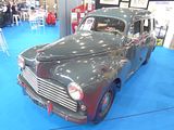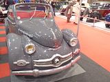 The Simca 6 is a city car and van produced and sold in France by Simca from 1947 until 1950. Simca had been established as a French subsidiary of Fiat and the Simca 6 was developed from the Simca 5 which itself had been a version of Fiat’s Topolino rebadged and manufactured in France as a Simca. With the launch, at the 1947 Paris Motor Show, of the Simca 6, the company’s Nanterre based development office demonstrated a hitherto unseen level of independent thinking for a Simca production model. The Simca was distanced from its Fiat origins by a modified « Americanised » front end, featuring a widened and lowered front grill, flanked by raised headlights integrated into the wing panels, along the lines featured by the then newly introduced Peugeot 203 and Renault 4CV. The rear overhang was extended with the addition of a small boot, accessible only from the interior of the car and almost entirely filled by the spare wheel. In addition to the small 2-door, 2-seat coupé style body, a small van capable of carrying up to 250 kg was available. Claimed output from the 569 cm³ engine was boosted from 12 to 16.5 bhp achieved at 4,400 rpm. The engine employed overhead valves operated with a side-mounted camshaft. The light-weight 6 inherited its predecessor’s excellent fuel economy, with 5 litres of fuel propelling it over a distance of 108 km, equivalent to more than 61 mpg (UK gallons). The advertised maximum speed of 90 or 95 km/h (56 or 59 mph) also reflected the car’s light build, and was considered excellent for a car of this size and price. In most respects, the principal mechanical elements followed conventional practice. The 4-speed gear box featured synchromesh on the top two ratios. Stopping power came from drum-brakes on all four wheels. Despite having its first public presentation at the 1947 Motor Show, the car got off to a slow start, with just 11 produced during the closing month of 1947 and 191 during the whole of 1948: during these years the older Simca 5 remained the company’s smaller volume model. However, in 1949 the Simca 6 fulfilled its manufacturer’s plans and replaced its predecessor. More than 16,000 Simca 6s were produced during its production run which came to an end in 1950: after this loyal Simca customers would need to upgrade to the larger (and far more commercially successful) Simca 8. Unlike its predecessor, the 6 was not seen as a commercial success, and it was not until 1961 that Simca would return to the small car sector (in French terms), with their Simca 1000. By the time the Simca 6 production run ended, the Italian Fiat Topolino on which it was based had also been upgraded: The Topolino C, arriving two years later than the Simca 6, featured the upgraded mechanical components first seen on the Simca, as well as a modern square front grill; but the Fiat offering came without the American style chrome of the Simca, and the Fiat’s headlights were positioned at a lower level. In retrospect Italian sources tend to view the Simca 6 as a French version of the upgraded Fiat Topolino while French sources stress the independent development of the Simca.