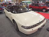 The Subaru Alcyone SVX, marketed outside Japan as the Subaru SVX, is a two-door, front-engine, all- or front-wheel drive coupé manufactured and marketed by Subaru from 1991 to 1996 over a single generation. Superseding the company’s aviation-influenced XT range, the Alcyone SVX was Subaru’s first entry into the luxury/performance market, and was noted for its aircraft-inspired ‘window-within-a-window’ side-glass configuration. The nameplate “Alcyone” refers to the brightest star in the Pleiades constellation, stylized in the Subaru company logo. The suffix “SVX” is an acronym for “Subaru Vehicle X”. The Subaru Alcyone SVX debuted as a concept at the 1989 Tokyo Auto Show with styling by noted Italian designer Giorgetto Giugiaro of ItalDesign. The SVX entered production, retaining its window-within-a-window configuration, adapted from the previous generation Subaru Alcyone with an additional extension of glass covering the A-pillar — which Subaru described as an “aircraft-inspired glass-to-glass canopy.” In contrast to the angular XT, the SVX featured softer lines with its two-piece power side windows. Each side window featured an operable section roughly two-thirds of the entire windows size, with the division parallel to the upper curve of the door frame. The SVX featured a drag coefficient of Cd=0.29, identical to that of the XT coupe it replaced. European market cars had a slightly lower wind resistance of Cd=0.285, thanks to a larger undertray. From 1991 to 1992, Subaru displayed the Amadeus, a prototype shooting brake variation on the SVX, in both two- and four-door versions, which was considered for production. Ultimately the Amadeus was not produced. The SVX debuted with and remained available with only one engine, the EG33 model 3.3-litre boxer horizontally opposed flat-six. This engine was the largest engine produced by Subaru for its passenger cars until the introduction of the 3.6-litre EZ36 engine in the 2008 Subaru Tribeca. The previous generation Subaru Alcyone had a turbocharged four-cylinder engine, but the larger EG33 was more powerful and so a turbo was not installed. The SVX was offered solely with an automatic transmissions, as Subaru did not offer a manual transmission capable of handling the horsepower and torque of the EG33 engine at the time. Subaru offered two all-wheel drive systems for the automatic transmission, called ACT-4 or VTD. The first system, called ACT-4 (active torque split) was introduced on the 1988.5 Alcyone using an electronic control unit to vary the torque applied to the rear wheels dynamically based on driving conditions. As an active system, it varied the torque split to the rear infinitely based on several inputs as a percentage of the torque available to the directly geared front wheels, never to exceed the theoretical “full lock” of 50% rear bias. This AWD system was used throughout the entire production run in vehicles manufactured for sale in the US.[citation needed] A more advanced system called VTD (variable torque distribution), was used on SVX for sale in Japan, Europe and Brazil. The VTD AWD system adds a planetary centre differential. The system retains the use of the ACT clutch and active control, though its size and role are much smaller as it is used only to suppress differential action instead of the complete differential function. When no speed difference exists between front and rear, the entire VTD gear rotates as a unit and torque split is at a mechanical 36/64 biased by the planetary gear ratio. The clutch is incorporated to prevent and suppress any differential action that may occur as the planetary gear will send virtually all torque to the axle with the highest speed if not restrained. By using a similar logic to the previous ACT system, the clutch can theoretically direct any percentage of torque to either axle, but in practice the variation remains between 34-50% front and 64-50% rear. This system is not capable of operating in 2WD and therefore could not be used on 2WD dynos as required for emissions testing in some states. This prevented VTD as an option on Subaru vehicles offered for sale in US until passenger car regulations were changed, which occurred long after the end of svx production. It was later introduced to the US with the Outback VDC. Problems with early SVX transmissions included a defective torque converter clutch which disintegrates and clogs early radiators (both clutch and radiator changed in 1993), and had systemic high clutch failures due to lower than spec pump pressure, fluid evacuation, and clutch balance pressure. Several major revisions were made, all of which are included by late 1994 production. Shortly after the SVX ended production Subaru transitioned to a completely redesigned 4 speed unit. The Japanese-spec “SVX L” received four-wheel steering in 1991 and 1992 (model code “CXD” of which 1,905 were built). The VTD equipped versions received the “CXW” chassis code. In an attempt to lower the price for the US market, a front-wheel drive (“CXV”) was offered in 1994 and 1995 but sales were less than stellar. Sales of the SVX reached 14,257 in the United States and a total of 24,379 worldwide. 2,478 SVXs were sold in Europe (of which 951 went to Switzerland, 854 to Germany, and 60 to France). Roughly 7,000 of all SVXs sold were right-hand drive models. Included in this number were the 249 vehicles sold in Australia. 5,884 units remained in Japan.