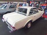 By 1955, Mercedes-Benz Technical Director Prof. Fritz Nallinger and his team held no illusions regarding the 190 SL’s lack of performance, while the high price tag of the legendary 300 SL supercar kept it elusive for all but the most affluent buyers. Thus Mercedes-Benz started evolving the 190 SL on a new platform, model code W127, with a fuel-injected 2.2 litre M127 inline-six engine, internally denoted as 220SL. Encouraged by positive test results, Nallinger proposed that the 220SL be placed in the Mercedes-Benz program, with production commencing in July 1957. However, while technical difficulties kept postponing the production start of the W127, the emerging new S-Class W112 platform introduced novel body manufacturing technology altogether. So in 1960, Nallinger eventually proposed to develop a completely new 220SL design, based on the “fintail” W 111 sedan platform with its chassis shortened by 11.8 in, and technology from the W112. This led to the W113 platform, with an improved fuel-injected 2.3 litre M127 inline-six engine and the distinctive “pagoda” hardtop roof, designated as 230 SL. The 230 SL made its debut at the prestigious Geneva Motor Show in March 1963, where Nallinger introduced it as follows: “It was our aim to create a very safe and fast sports car with high performance, which despite its sports characteristics, provides a very high degree of travelling comfort”. The W113 was the first sports car with a “safety body,” based on Bela Barényi’s extensive work on vehicle safety: It had a rigid passenger cell and designated crumple zones with impact-absorbing front and rear sections built into the vehicle structure. The interior was “rounded,” with all hard corners and edges removed, as in the W111 sedan. Production of the 230 SL commenced in June 1963 and ended on 5 January 1967. Its chassis was based on the W 111 sedan platform, with a reduced wheelbase by 11.8 in, recirculating ball steering (with optional power steering), double wishbone front suspension and an independent single-joint, low-pivot swing rear-axle with transverse compensator spring. The dual-circuit brake system had front disc brakes and power-assisted rear drum brakes. The 230 SL was offered with a 4-speed manual transmission, or an optional, very responsive fluid coupled (no torque converter) 4-speed automatic transmission, which was popular for US models. From May 1966, the ZF S5-20 5-speed manual transmission was available as an additional option, which was particularly popular in Italy. The 2,308 cc M127.II inline-six engine with 150 hp and 145 lb/ft torque was based on Mercedes-Benz’ venerable M180 inline-six with four main bearings and mechanical Bosch multi-port fuel injection. Mercedes-Benz made a number of modifications to boost its power, including increasing displacement from 2,197 cc, and using a completely new cylinder head with a higher compression ratio (9.3 vs. 8.7), enlarged valves and a modified camshaft. A fuel injection pump with six plungers instead of two was fitted, which allowed placing the nozzles in the cylinder head and “shooting” the fuel through the intake manifold and open valves directly into the combustion chambers. An optional oil-water heat exchanger was also available. Of the 19,831 230 SLs produced, less than a quarter were sold in the US. Looking identical, the 250 SL was introduced at the 1967 Geneva Motor Show. Production had already commenced in December 1966 and ended in January 1968. The short one-year production run makes the 250 SL the rarest of the W113 series cars. The 250 SL retained the stiffer suspension and sportier feel of the early SLs, but provided improved agility with a new engine and rear disc brakes. Range also improved with increased fuel tank capacity from 65 litres to 82. Like its predecessor, the 250 SL was offered with a 4-speed automatic transmission, and 4-speed or ZF 5-speed manual transmissions. For the first time, an optional limited slip differential was also available. The main change was the use of the 2,496 cc M129.II engine with a larger stroke, increased valve ports, and seven main bearings instead of four. The nominal maximum power remained unchanged at 150 hp, but torque improved from 145 lb/ft to 159 lb/ft. Resiliency also improved with a new cooling water tank (“round top”) with increased capacity and a standard oil-water heat exchanger. The 250 SL also marked the introduction of a 2+2 body style, the so-called “California Coupé”, which had only the removable hardtop and no soft-top: a small fold-down rear bench seat replaced the soft-top well between passenger compartment and boot. It is estimated that only 10% of the 250SLs that were brought into America were California Coupes. Of the 5,196 250 SLs produced, more than a third were sold in the US.The 280 SL was introduced in December 1967 and continued in production through 23 February 1971, when the W 113 was replaced by its successor, the entirely new and substantially heavier R107 350 SL. The main change was an upgrade to the 2,778 cc M130 engine with 170 hp and 180 lb/ft, which finally gave the W 113 adequate power. The performance improvement was achieved by increasing bore by 4.5 mm (0.2 in), which stretched the limits of the M180 block, and required pairwise cylinder casts without cooling water passages. This mandated an oil-cooler, which was fitted vertically next to the radiator. Each engine was now bench-tested for two hours prior to being fitted, so their power specification was guaranteed at last. The M130 marked the final evolution of Mercedes-Benz’ venerable SOHC M180 inline-six, before it was superseded by the entirely new DOHC M110 inline-six introduced with R107 1974 European 280 SL models. For some time, it was also used in the W 109 300 S-Class, where it retired the expensive 3 liter M189 alloy inline-six. Over the years, the W 113 evolved from a sports car into a comfortable grand tourer, and US models were by the