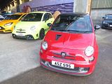 Having used the legendary 695 badging from the 1960s on the Tributo cars, at the 2012 Geneva Show, Abarth dusted off the 595 name that had been used on the less powerful of the Nuova 500 based cars of the same generation, and created two new versions which we should think of as Series 2 cars, the 595 Turismo and Competizione, both of which could be bought in either closed or open top C guise, with either the 5 speed manual or robotised automated gearshifts. Both models had the 160 bhp engine as standard. Effectively they were a replacement for the Esseesse kit, and it meant that the cars were produced complete at the factory, rather than needing the dealer to undertake the upgrade (and the associated paperwork), though Abarth did not withdraw the Esseesse kits from the market for some while. Turismo, as the name suggests was aimed slightly less extreme in intent, featuring standard leather upholstery, upgraded dampers and climate control, Xenon headlights and Alutex interior details. The sportier Abarth 595 Competizione replaced the leather seats with Sabelt cloth sport seats and Alutex with aluminium, while adding p-cross-drilled brakes and the Record Monza dual-mode exhaust.