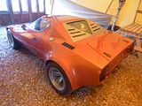 Needing little in the way of an introduction is this Stratos. Sadly not an original car (which are extremely rare these days), it is a well-produced replica, but is still rather splendid, and it was attracting lots of interest. A Bertone-designed concept car called the Lancia Stratos Zero was shown to the public in 1970, but shares little but the name and mid-engined layout with the Stratos HF version. A new car called the New Stratos was announced in 2010 which was heavily influenced by the design of the original Stratos, but was based on a Ferrari chassis and engine. Bertone had no previous business with Lancia, who were traditionally linked with Pininfarina, and he wanted to come into conversation with them. Bertone knew that Lancia was looking for a replacement for the ageing Fulvia for use in rally sports and so he designed an eye-catcher to show to Lancia. Bertone used the running gear of the Fulvia Coupé of one of his personal friends and built a running showpiece around it. When Bertone himself appeared at the Lancia factory gates with the Stratos Zero he passed underneath the barrier and got great applause from the Lancia workers. After that a co-operation between Lancia and Bertone was formed to develop a new rally car based on ideas of Bertone’s designer Marcello Gandini who already had designed the Lamborghini Miura and Countach. Lancia presented the Bertone-designed Lancia Stratos HF prototype at the 1971 Turin Motor Show, a year after the announcement of the Stratos Zero concept car. The prototype Stratos HF (Chassis 1240) was fluorescent red in colour and featured a distinctive crescent-shaped-wrap-around windshield providing maximum forward visibility with almost no rear visibility. The prototype had three different engines in its early development life: the Lancia Fulvia engine, the Lancia Beta engine and finally for the 1971 public announcement, the mid-mounted Dino Ferrari V6 producing 190 hp. The use of the Dino V6 was planned right from the beginning of the project, but Enzo Ferrari was reluctant to sign off the use of this engine in a car he saw as a competitor to his own Dino V6. After the production of the Dino car had ended the “Commendatore” (a popular nickname for Enzo Ferrari) agreed on delivering the engines for the Stratos, and Lancia then suddenly received 500 units. The Stratos was a very successful rally car during the 1970s and early 1980s. It started a new era in rallying as it was the first car designed from scratch for this kind of competition. The three leading men behind the entire rallying project were Lancia team manager Cesare Fiorio, British racer/engineer Mike Parkes and factory rally driver Sandro Munari with Bertone’s Designer Marcello Gandini taking a very personal interest in designing and producing the bodywork. Lancia did extensive testing with the Stratos and raced the car in several racing events where Group 5 prototypes were allowed during the 1972 and 1973 seasons. Production of the 500 cars required for homologation in Group 4 commenced in 1973 and the Stratos was homologated for the 1974 World Rally Championship season. The Ferrari Dino V6 engine was phased out in 1974, but 500 engines among the last built were delivered to Lancia. Production ended in 1975 when it was thought that only 492 were made (for the 1976 season, the Group 4 production requirement was reduced to 400 in 24 months. Manufacturer of the car was Bertone in Turin, with final assembly by Lancia at the Chivasso plant. Powered by the Dino 2.4 litreV6 engine that was also fitted to the rallying versions, but in a lower state of tune, it resulted in a power output of 190 hp, giving the road car a 0–100 km/h time of 6.8 seconds, and a top speed of 232 km/h (144 mph). The Stratos weighed between 900 and 950 kilograms, depending on configuration. Power output was around 275 hp for the original 12 valve version and 320 hp for the 24 valve version. Beginning with the 1978 season the 24 valve heads were banned from competition by a change to the FIA rules. Even with this perceived power deficit the Stratos was the car to beat in competition and when it did not suffer an accident or premature transmission failure (of the latter there were many) it had great chances to win. Despite the fact that the Stratos was never intended to be a race car, there were two Group 5 racing cars built with 560 hp, using a single KKK turbocharger. The car won the 1974, 1975 and 1976 championship titles in the hands of Sandro Munari and Björn Waldegård, and might have gone on to win more had not internal politics within the Fiat group placed rallying responsibility on the Fiat 131 Abarths. As well as victories on the 1975, 1976 and 1977 Monte Carlo Rally, all courtesy of Munari, the Stratos won the event with the private Chardonnet Team as late as 1979. Without support from Fiat, and despite new regulations that restricted engine power, the car would remain a serious competitor and proved able to beat works cars in several occasions when entered by an experienced private team with a talented driver. The last victory of the Stratos was in 1981, at the Tour de Corse Automobile, another World Rally Championship event, with a victory by longtime Stratos privateer Bernard Darniche. When the Fiat group favoured the Fiat 131 for rallying Lancia also built two Group 5 turbocharged ‘silhouette’ Stratos for closed-track endurance racing. These cars failed against the Porsche 935s on closed tracks but proved successful in hybrid events. While they failed in the Tour de France Automobile, one of these cars won the 1976 Giro d’Italia Automobilistico, an Italian counterpart of the Tour de France Automobile. One of the cars was destroyed in Zeltweg, when it caught fire due to overheating problems.  The last surviving car would win the Giro d’Italia event again before it was shipped to Japan to compete in the Fuji Speedway based Formula Silhouette series, which was never raced. The car woul