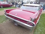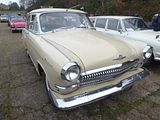 Sometimes known as the Buick Eight, this is a 1950 Buick Super. The Super shared a new General Motors C-body with the Roadmaster but on a shorter wheelbase. It featured three chrome VentiPorts on each front fender to denote its smaller displacement straight-eight engine when compared with the Roadmaster. The sales brochure noted that VentiPorts helped ventilate the engine compartment, and possibly that was true in early 1949, but sometime during the model year they became plugged. The idea for VentiPorts grew out of a modification Buick styling chief Ned Nickles had added to his own 1948 Roadmaster. He had installed four amber lights on each side of his car’s hood wired to the distributor so as to flash on and off as each piston fired simulating the flames from the exhaust stack of a fighter airplane. Combined with the gunsight mascot hood ornament, VentiPorts put the driver at the controls of an imaginary fighter airplane. Upon seeing this, Buick chief Harlow Curtice was so delighted that he ordered that (non-lighting) VentiPorts be installed on all 1949 Buicks. “Super” script was found just above the full length body fender molding on the front fenders. New fender edge taillamps were featured while rear fender skins remained a Buick standard. New fender top parking lamps, harkening back to 1941 styling appeared. Full wheel trim discs were standard along with such features as a cigar lighter, ashtray, and automatic choke. Cloth interiors were standard, except on the convertible which was trimmed in leather and leatherette and had a power top, seat and windows as standard equipment. Dynaflow automatic transmission was now optional equipment on Supers in 1949. Cars so equipped had 6.9:1 compression ratio and 120 horsepower. Total sales set a record at 190,514 for the first time since the Super’s introductory year. The instrument panel was new. The Super was available in four body styles: 2-door Sedanet fastback, 4-door sedan, 2-door convertible and 4-door wagon. The 1950 Supers shared with all the other series totally new all bumper guard grille and more rounded styling. Super script appeared on front fenders just above the full length lower bodyside moldings. A new body style was a 2-door Riviera hardtop. Another new bodystyle was a long wheelbase sedan which was stretched an extra four inches (102 mm) and featured plusher interior than most Supers, which normally had cloth interiors of finer material than the Special. Supers had three VentiPorts on each hoodside. The convertible had leather power seats plus power windows and top. The Sedanet was now called Jetback, whilst the notchback sedan was named Tourback. The 1950 Super came with a single two-barrel carburetor on a new higher displacement 263 cu in (4.3 L) Fireball I8 which produced 112 hp. It was able to achieve speeds over 90 miles per hour (140 km/h) with an optional Dynaflow automatic transmission which, rather than changing through gears, used the torque converter to couple the motor to a single gear ratio. The car had two splits in the back glass although the windshield was now curved one-piece glass. Models also could be equipped with an AM radio and an antenna that could be adjusted via a knob in the front center above the windshield. In the June 1953 Popular Mechanics, acceleration was rated at 0-60 mph in 14.5 seconds due to the languid nature of the Dynaflow transmission. The Super set an all time record of 251,883 sold. In 1951 Supers had larger bodies than Specials but looked similar with three rounded VentiPorts per fender, broad bright fender shields and a full length “Sweepspear” chrome body side molding. This chrome-plated strip started above the front wheel, after which it gently curved down nearly to the rocker panel just before the rear wheel, and then curved around the rear wheel in a quarter of a circle to go straight back to the taillight. Series script was found on the deck lid and within the steering wheel center. The long wheelbase sedan was named the Riviera sedan although it was not a hardtop. Supers were trimmed with materials similar to Special Deluxes except for in the plush Super Riviera sedan. Front turn signals were within the bumper guard “bombs,” while rear signals shared the stop lamps’ housing on the rear fender edges. The convertibles and Estate wagon were trimmed in leather. 169,226 Supers were sold. The Jetback Sedanet was discontinued with only 1,500 produced, with the fastback design, dating back to the pre-war era, being regarded as dated by the turn of the decade. In 1952 Buick’s mid-priced line resembled the Series 40 with three VentiPorts per fender and Sweepspear rocker panel trim. Super script appeared on the rear fenders aided identification. The Super was built with the larger C-body, however. The full flowing fenderline dipped deeper on this body and rear fenders had a rear crest line absent on the B-body Specials. A new deck lid gave a more squared off appearance. Like other Buick series it was a near copy year for 1952. Chromed rear fender fins gave distinction to 1952 Supers. Interiors were cloth except on convertibles and Estate wagons which were trimmed with leather. The Super used a different instrument panel than the Special. It was distinguished by a large centre speedometer housing flanked by smaller gauge housings. Series identification was found within the steering wheel center. The Sedanet and the regular wheelbase sedan were cancelled. Sales fell to 135,332. In 1953 Buick’s middle priced line shared the Roadmaster’s new V8 and, for this year the Roadmaster Riviera sedan shared the Super Riviera sedan’s 125.5 in (3188 mm) wheelbase. The Special shared the Super Tourback sedan’s 121.5 in (3,086 mm) wheelbase. The Super earned a horizontal trim bar on its rear fenders which distinguished it from the Series 70 Roadmasters. Otherwise its side trim bar on its rear fenders was identical although the Super had only three VentiPorts on each front f