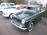 Half-ton commercial models based on the A55 were introduced in 1957. The van was released in February and was followed in May by pick-up, chassis and cab and chassis and scuttle models. Contemporary sales literature used the term “Austin ½ ton van and pick-up”. In October 1962, new models were introduced with a restyled front end and bumper, chrome side mouldings, 14″ wheels, and various interior refinements. Morris-badged van and pick-up models also were now offered. From September 1963, the commercial models were fitted with the 1,622 cc engine from the Austin A60 saloon, with the Austins still marketed under the “Austin ½ ton” name. They remained in production until 1973.