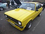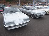 In 1973, Vauxhall acknowledged that their rather dull model range needed a makeover, and developed a radical version of the Firenza, known officially as the High Performance (HP) Firenza, but known colloquially as the “droopsnoot” after its dramatically styled aerodynamic nose. The nose was moulded from GRP, and featured two pairs of Cibié headlamps behind toughened glass covers. The overall look was somewhat reminiscent of the Renault Alpine A310, and used the same headlamp units. Several prototypes of the HP Firenza were considered with different types of front end treatment, requiring different degrees of change from the standard production front end, including cars known as Black Knight and Daytona, the latter for its resemblance to the Ferrari Daytona, a favourite of Wayne Cherry. At that time, the original flat-fronted Firenza model was rebadged as the Magnum coupé, and the name Firenza was used exclusively for the HP version. This car was an exciting styling departure for Vauxhall, and certainly created something of a buzz. The engine was the 2.3-litre variant of the OHC Slant Four engine, uprated to a very torquey 131 bhp using a variety of parts developed by Blydenstein Racing. It had twin 175 Stromberg carburettors, high-lift camshaft and free-flow tubular exhaust manifold. The car was restyled on the David Jones original by American designer Wayne Cherry and the result was an exceptionally low drag coefficient for its time. Suspension was uprated and lowered, brakes uprated, and a 5-speed ZF dog leg gearbox was installed, a much stronger unit than fitted to the standard model (though rather noisy). Another unusual and unique feature of the car was the alloy Avon Safety Wheels, which were designed to retain the tyre safely in the event of a puncture. This was the first car to use these wheels in production. All production cars were painted in the same colour – Silver Starfire, and featured a largely black interior with silver-grey cloth seats. An unusual interior feature of dubious utility was the passenger grab handle on the dash in place of the standard glovebox. The car was a design triumph for Vauxhall, but a marketing failure. The car was launched to much publicity in a special one-off race at Thruxton circuit in Hampshire, with top drivers of the day taking part including Gerry Marshall and Barry “Whizzo” Williams, who won the race. However, the fuel crisis of the time meant that suddenly it became very hard to sell gas-guzzling cars like this (even though the aerodynamics increased fuel economy greatly, reducing the power needed to attain its top speed by some 30 hp), and coupled with some production line difficulties in actually building the car meant that sales and delivery were slow, and eventually just 204 examples were built, far short of the 30,000 projected. This very low volume was obviously a disaster for Vauxhall, but ironically it has led to the car becoming a very collectible classic, thus ensuring its survival—some of the much more common production cars produced alongside it can be now harder to find. Celebrity owners of droopsnoot Firenzas are footballer Luther Blissett and former sports commentator Stuart Hall. The Firenza was also very successful in saloon car racing in the 1970s, especially in its Old Nail and Baby Bertha versions, piloted to great effect by Gerry Marshall. As well as the HP version, also to be seen here was the earlier car, which was effectively a coupe version of the HC Viva. In the autumn of 1973 these were rebranded as Magnum and offered with the 1800 and 2300cc engines. They never came close to generating the affection that was held by the Capri, their closest rival.