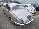 Launched late in 1962, the Daimler V8 Saloon was essentially a rebadged Jaguar Mark 2 fitted with Daimler’s 2.5-litre 142 bhp V8 engine and drive-train, a Daimler fluted grille and rear number plate surround, distinctive wheel trims, badges, and interior details including a split-bench front seat from the Jaguar Mark 1 and a black enamel steering wheel. Special interior and exterior colours were specified. Most cars were fitted with power-assisted steering but it was optional. Automatic transmission was standard; manual, with or without overdrive, became an option in 1967. The 2.5 V8 was the first Jaguar designed car to have the Daimler badge. A casual observer, though not its driver, might mistake it for a Jaguar Mark 2. The Daimler’s stance on the road was noticeably different from a Mark 2. In April 1964 the Borg-Warner Type 35 automatic transmission was replaced by a D1/D2 type, also by Borg-Warner. A manual transmission, with or without an overdrive unit usable with the top gear, became available on British 2.5 V8 saloon in February 1967 and on export versions the following month. Cars optioned with the overdrive had the original 4.55:1 final drive ratio. In October 1967, there was a minor face-lift and re-labelling of the car to V8-250. It differed only in relatively small details: “slimline” bumpers and over-riders (shared with the Jaguar 240/340 relabelled at the same time), negative-earth electrical system, an alternator instead of a dynamo and twin air cleaners, one for each carburettor. Other new features included padding over the instrument panel, padded door cappings and ventilated leather upholstery, reclinable split-bench front seats and a heated rear window. Power steering and overdrive were optional extras. Jaguar replaced its range of saloons—the 240, the 340, the 420, and the 420G—with the XJ6 at the end of 1968. The company launched the XJ6-based Daimler Sovereign the following year to replace the Daimler saloons—the 240-based V8-250 and the 420-based Sovereign. Henceforth all new Daimlers would be re-badged Jaguars with no engineering links to the pre-1960 Daimlers.
