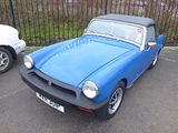 Sitting alongside the MGB in the MG range was the smaller Midget, and there were a couple of these cars here, a Series 3 model and one of the later rubber-bumpered cars. The 1961 Midget resurrected the name that was used by MG for their smallest car, the M Type, in the late 20s, was the Midget announced in 1961, and was essentially a slightly more expensive badge-engineered version of the MkII Austin-Healey Sprite. The original ‘Frogeye’ Sprite had been introduced specifically to fill the gap in the market left by the end of production of the MG T-type Midget as its replacement, the MGA had been a significantly larger and more expensive car with greater performance. Many existing MG enthusiast and buyers turned to the Sprite to provide a modern low-cost sports car and so a badge-engineered MG version reusing the Midget name made sense. The new Midget differed from the Sprite only in its grille design, badging, colour options and having both leather seats and more external chrome trim as standard to justify its higher purchase price. Mechanically the car was identical to its Austin-Healey counterpart, retaining the rear suspension using quarter-elliptic leaf springs and trailing arms from the ‘Frogeye’. The engine was initially a 948 cc A-Series with twin SU carburettors producing 46 hp at 5500 rpm and 53 lb/ft at 3000 rpm. Brakes were 7″ drums all round. A hard top, heater, radio and luggage rack were available as factory-fitted extras. In October 1962 the engine was increased to 1098 cc, raising the output to 56 hp at 5500 rpm and 62 lb/ft at 3250 rpm, and disc brakes replaced the drums at the front. Wire spoked wheels became available. The doors had no external handles or locks and the windows were sliding Perspex side-screens. A heater was still an optional extra. The car sold well, with 16,080 of the small-engined version and 9601 of the 1098 being made before the arrival in 1964 of the Mark II. Externally the main changes were to the doors, which gained wind-up windows, swivelling quarter lights, external handles and separate locks. The windscreen also gained a slight curvature and was retained in a more substantial frame. The hood, though modified, continued to have a removable frame that had to be erected before the cover was put on. The rear springs were replaced by more conventional semi-elliptic types which gave a better ride. The engine block was strengthened and larger main bearings were fitted, increasing the power to 59 hp at 5750 rpm and torque to 65 lbf·ft at 3500 rpm. A total of 26,601 were made. 1967 saw the arrival of the Mark III. The engine now grew to 1275 cc using the development seen on the Mini-Cooper ‘S’. Enthusiasts were disappointed that this was a detuned version of the 76-bhp Cooper ‘S’ engine, giving only 65 hp at 6000 rpm and 72 lbf·ft at 3000 rpm. A reduced compression ratio of 8.8:1 was used instead of the 9.75:1 employed on the Cooper S engine. The Midget used the 12G940 cylinder head casting that was common to other BMC 1300 cars, whereas the Cooper ‘S’ had a special head with not only larger inlet, but also larger exhaust valves; however, these exhaust valves caused many ‘S’ heads to fail through cracking between the valve seats. The detuned engine was used for reasons of model range placement – with the Cooper ‘S’ spec engine, the Midget would have been faster than the more expensive MGB. The hydraulic system gained a separate master cylinder for the clutch. The hood was now permanently attached to the car, with an improved mechanism making it much easier to use. Minor facelift changes were made to the body trim in late 1969 with the sills painted black, a revised recessed black grille, and squared off taillights as on the MGB. The 13″ “Rostyle” wheels were standardised, but wire-spoked ones remained an option. The square-shaped rear wheel arches became rounded in January 1972 and later that year a Triumph steering rack was fitted, giving a gearing that was somewhat lower than earlier Midgets. A second exhaust silencer was also added in 1972. Alternators were fitted instead of dynamos from 1973 onwards. Many consider the round-arch Midgets with chrome bumpers produced for model years 1972 and 1974 to be the most desirable. These round-arch cars started leaving the Abingdon factory in late 1971. Between 1966 and the 1969 face lift, 22,415 were made, and a further 77,831 up to 1974. In late 1974, to meet US federal regulations, large black plastic bumpers (usually called rubber bumpers, despite not actually being rubber) were added to the front and rear and the ride height was increased. The increased ride height affected handling, and an anti-roll bar was added to help with higher centre of gravity. The A-Series engine was replaced by the 1493 cc unit from the Triumph Spitfire with a modified Morris Marina gearbox with synchromesh on all four gears. The increased displacement of the new engine was better able to cope with the increasing emission regulations. Although the horsepower ratings were similar, at 65 bhp, the 1493 cc engine produced more torque. The increased output combined with taller gear ratios resulted in faster acceleration and a top speed of just over 100 mph. In the US market British Leyland struggled to keep engine power at acceptable levels, as the engines were loaded with air pumps, EGR valves and catalytic converters to keep up with new US and California exhaust emission control regulations. The home market’s dual SU HS4 carbs were swapped for a single Zenith-Stromberg 150 CD4 unit, and the power fell to 50 bhp at 5000 rpm and 67 lb-ft of torque at 2500 rpm. The round rear-wheel arches were now square again, to increase the body strength. The last car was made on 7 December 1979, after 73,899 of the 1500 model had been made, with the last 500 home-market cars painted black.