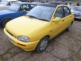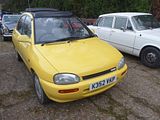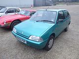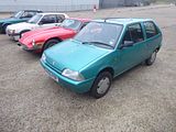 Development of the AX started in 1983, and was initially also going to form the basis of a sister model from Talbot to replace the Samba; however, the falling popularity of the Talbot brand – coupled with the huge success of the new Peugeot 205 – had led to Peugeot deciding to axe it by the time the Citroën AX was launched, and so the Talbot version never made it into production. The car was available on the left-hand drive continental markets from its launch on 2 October 1986, as a three-door hatchback with 1.0, 1.1 and 1.4-litre TU-series belt driven OHC engines. A range of five-door models was added in 1987 and a 1.4 litre diesel engine was introduced in 1988. The latter was replaced by a 1.5 litre unit in September 1994. The right-hand drive version for the UK market was launched in August 1987, initially only as a three-door hatchback, with a five-door version joining the range a year later, effectively replacing the five-door Citroën Visa, which was discontinued that year. With the final demise of the classic Citroën 2CV in 1990, the AX became the smallest model in the Citroën range. The very earliest cars had an issue with gear shifters falling off; this was rectified by the time the AX reached export markets. It was initially backed by a memorable television advertising campaign filmed in China, starring actress Janet Mas and an elderly gentleman, whose character was simply known as Mr. Wong. The car was very economical, largely because of excellent aerodynamics for its class of car (drag coefficient of 0.31) and a very light weight of 640 kg (1,411 lb) for the basic version. This was due to the extensive use of plastic panels in non-load bearing areas and varying the thicknesses of steel in the bodyshell to be the minimum needed to take required loads. Another target for the engineers was lowering friction in the engines. The AX has fully independent suspension with unusually long wheel travel. It also optionally used self-coloured plastic bumpers. This technology came from the PSA Peugeot-Citroën / Renault / French government ECO 2000 project. The production version was much more conservative than the original ‘one box’ design prototype, that was closer to the Eco 2000 styling after negative reactions in focus groups. The “one-box” city car eventually came to market with the Renault Twingo, launched in 1992. In 1989, a naturally aspirated diesel AX, using the 1360 cc all aluminium alloy TUD engine, managed a figure of 2.7 litres/100 km (100 mpg), totalling over 1,000 miles from Dover to Barcelona. This was the longest ever distance travelled on 10 gallons of fuel and earned it a place in the Guinness Book of Records as the most economical production car. Also available was a 4×4 variant, but with limited success when compared to the rival Fiat Panda 4×4. The AX 4×4 was only available with five doors and was not sold in the United Kingdom. The first performance version was the limited-run AX Sport from 1987, with a 1.3 engine and twin carburettors producing 95 bhp, wearing iconic white steel wheels (5,5″ x 13″) which resembled those on its brother, the Peugeot 205 Rallye. The AX Sport used Solex ADDHE 40 carburettors until late 1988 and was then replaced with Weber DCOM 40s, just like the 205 Rallye 1,3. The AX Sport had a shorter inlet manifold than the 205 Rallye, to save room in the smaller engine compartment. In phase 2 guise the Sport was available in other colours and with optional GT wheels and rear spoiler. Later, the AX 14GT, with a single-carburettor 85 bhp 1.4 engine also found in the Peugeot 205 XS, was introduced. From 1991, this model utilised fuel injection to coincide with the revamp of the entire range and to coincide with tougher 1992 EU emission regulations that introduced exhaust catalytic converters. Late 1991 saw the range revised, with a heavily facelifted tailgate and interior being the most notable changes. The front turn signals were now clear, and the Citroën logo was moved to the center of the bonnet. The much maligned dashboard was replaced by a more conservative design. The following year saw the introduction of the most powerful AX variant, the 100 bhp GTi. The GT was sold alongside the GTi for a few months, but was eventually phased out. New models were also introduced, such as the Forte, Spree, Elation and Dimension. In January 1995, the Citroën AX Echo was launched, with a top speed of 110 mph (180 km/h). Its closest competitor, the Peugeot 106 Ski, (that shared components with the AX), was outsold by the Echo. From June 1996, following the introduction of the Saxo, the range was slimmed-down, with production of the AX ending in December 1998, after a 12-year production
