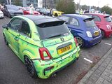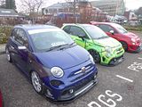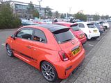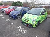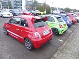 The majority of the Abarths here 500-based models as you might expect. These have been on sale now since the end of 2008, following a launch at the Paris Show that year. Since that time there have been a number of detailed changes to the standard cars and a lot of limited editions. Those who really know the marque can spot most of them, but some are so subtle that unless there is a badge you can see, you will not be quite sure which version you are looking at. It used to be relatively easy, when the model was first launched, as there was only one version as shipped ex works called the 500. It had a 135 bhp 1.4 litre turbo-charged engine coupled to a five speed manual gearbox, with 16″ alloys as standard, and the option of 17″ wheels, and a colour palette comprising of two whites (BossaNova White, the standard colour, or the pearlescent Funk White), Red (Pasadoble), Pale Grey (Campovolo) or Black. If you wanted more power – 160 bhp – then you could order an Esseesse kit, which came in a large wooden crate, containing new wheels, springs, an ECU upgrade, the Monza exhaust system and badging. It was dealer fitted and could be applied at any time within the first 12 months or 10,000 miles from registration. Needless to say, it proved popular. As were many of the optional extras, with stickers for the sides, a large scorpion for the bonnet and even a chequered pattern for the roof among the personalisation options offered.