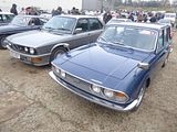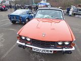 Launched at the same time as the Rover 2000 was Triumph’s large saloon car, also called 2000. A replacement for the long running Standard Vanguard, this was the more sporting of the duo, with a subtly different appeal from the Rover. Between them, the cars defined a new market sector in the UK, promising levels of comfort and luxury hitherto associated with larger Rover and Jaguar models, but with usefully lower running costs and purchase prices, all in a modern package. Both added more powerful models to their range, with Rover going down the twin carburettor route, whilst in 1967, Triumph installed a larger 2.5 litre engine and the then relatively new fuel injection system, creating the 2.5PI, which is what was to be seen here. This Lucas system was not renowned for its reliability in the early days, but it did make the car rapid and refined. A facelift in 1969 brought new styling front and rear, which turned out to be a taster for a new grand tourer model which would emerge a few months later, and in this Mark 2 guise, the car was sold until 1977, in both saloon and estate guises. A mid range model, with twin carburettors but the larger engine, the 2500TC was introduced in 1974 and the 2500S arrived in 1975 with more power but also carb fed, to replace the troublesome and thirsty PI. These are the most sought after models now.