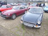 As one of Britain’s most popular classic cars, it was no surprise to find several examples of the MGB here, with cars from throughout the model’s long life, both in Roadster and MGB GT guise, as well as one of the short-lived V8 engined cars. Launched in October 1962, this car was produced for the next 18 years and it went on to become Britain’s best selling sports car. When first announced, the MGB was an innovative, modern design, with a monocoque structure instead of the traditional body-on-frame construction used on both the MGA and MG T-types and the MGB’s rival, the Triumph TR series, though components such as the brakes and suspension were developments of the earlier 1955 MGA and the B-Series engine had its origins back in 1947. The lightweight design reduced manufacturing costs while adding to overall vehicle strength, and with a 95hp 3-bearing 1798cc engine under the bonnet, performance was quite respectable with a 0–60 mph time of just over 11 seconds. The car was rather more civilised than its predecessor, with wind-up windows now fitted as standard, and a comfortable driver’s compartment offered plenty of legroom. The roadster was the first of the MGB range to be produced. The body was a pure two-seater but a small rear seat was a rare option at one point. By making better use of space the MGB was able to offer more passenger and luggage accommodation than the earlier MGA while being 3 inches shorter overall. The suspension was also softer, giving a smoother ride, and the larger engine gave a slightly higher top speed. The four-speed gearbox was an uprated version of the one used in the MGA with an optional (electrically activated) overdrive transmission. A five-bearing engine was introduced in 1964 and a number of other modifications crept into the specification. In late 1967, sufficient changes were introduced for the factory to define a Mark II model. Alterations included synchromesh on all 4 gears with revised ratios, an optional Borg-Warner automatic gearbox, a new rear axle, and an alternator in place of the dynamo with a change to a negative earth system. To accommodate the new gearboxes there were significant changes to the sheet metal in the floorpan, and a new flat-topped transmission tunnel. US market cars got a new safety padded dashboard, but the steel item continued for the rest of the world. Rostyle wheels were introduced to replace the previous pressed steel versions in 1969 and reclining seats were standardised. 1970 also saw a new front grille, recessed, in black aluminium. The more traditional-looking polished grille returned in 1973 with a black “honeycomb” insert. Further changes in 1972 were to the interior with a new fascia. To meet impact regulations, in late 1974, the chrome bumpers were replaced with new, steel-reinforced black rubber bumpers, the one at the front incorporating the grille area as well, giving a major restyling to the B’s nose, and a matching rear bumper completed the change. New US headlight height regulations also meant that the headlamps were now too low. Rather than redesign the front of the car, British Leyland raised the car’s suspension by 1-inch. This, in combination with the new, far heavier bumpers resulted in significantly poorer handling. For the 1975 model year only, the front anti-roll bar was deleted as a cost-saving measure (though still available as an option). The damage done by the British Leyland response to US legislation was partially alleviated by revisions to the suspension geometry in 1977, when a rear anti-roll bar was made standard equipment on all models. US emissions regulations also reduced horsepower. In March 1979 British Leyland started the production of black painted limited edition MGB roadsters for the US market, meant for a total of 500 examples. Due to a high demand of the limited edition model, production ended with 6682 examples. The United Kingdom received bronze painted roadsters and a silver GT model limited editions. The production run of home market limited edition MGBs was split between 421 roadsters and 579 GTs. Meanwhile, the fixed-roof MGB GT had been introduced in October 1965, and production continued until 1980, although export to the US ceased in 1974. The MGB GT sported a ground-breaking greenhouse designed by Pininfarina and launched the sporty “hatchback” style. By combining the sloping rear window with the rear deck lid, the B GT offered the utility of a station wagon while retaining the style and shape of a coupe. This new configuration was a 2+2 design with a right-angled rear bench seat and far more luggage space than in the roadster. Relatively few components differed, although the MGB GT did receive different suspension springs and anti-roll bars and a different windscreen which was more easily and inexpensively serviceable. Although acceleration of the GT was slightly slower than that of the roadster, owing to its increased weight, top speed improved by 5 mph to 105 mph because of better aerodynamics. 523,826 examples of the MGB of all model types were built, and although many of these were initially sold new in North America, a lot have been repatriated here