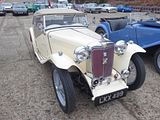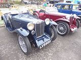 Replacing the J series cars was the 1934 PA. The PA and later PB replaced the J Type Midget. These 2-door sports cars used an updated version of the overhead camshaft, crossflow engine that was also used in the 1928 Morris Minor and Wolseley 10 as well as the J-type Midget of 1932 to 1934. It drove the rear wheels through a four-speed non-synchromesh gearbox. The chassis was a strengthened and slightly longer version of that used in the J-type with suspension by half-elliptic springs all round with rigid front and rear axles. Steering was initially by a Marles Weller and later a Bishop Cam system. The two-seat car had a wheelbase of 87″ and a track of 42″. Most cars were open two seaters, but streamlined Airline coupé bodies were also made. The P-type was also available as a four-seater, a car that suffered from a lack of power and poor rear ground clearance. Whereas J, K and L-type MGs differentiated between versions with the use of numbers, with 1 indicating a four-seater (the J1) and 2 a two-seater (the J2), this was not the case with the P-type (or its six-cylinder sister, the N-type Magnette), and there is no clue to the type in the name. The first version, the PA used an 847 cc engine similar to the one on the J-Type, but now with a 3-bearing crankshaft, larger camshaft and twin SU carburettors. It produced 36 bhp at 5,500 rpm. In 1935, a PA open two-seater cost £222. Around 2,000 PAs were made. In late 1936 the PA was replaced by the PB, which had a larger 939cc 43bhp engine and which is distinguished by a grille of vertical slats as opposed to the honeycomb pattern of the PA. 526 examples of the PB were made.