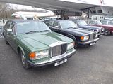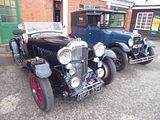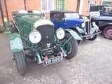 Oldest of the models present was this example of the 3 litre cars that were produced in the 1920s and which epitomise the classic Bentley to many people. The 3 Litre was the company’s first model, first shown in 1919 and made available to customers’ coachbuilders from 1921 to 1929. It was conceived for racing. The Bentley was very much larger than the 1368 cc Bugattis that dominated racing at the time, but double the size of engine and strength compensated for the extra weight. The 4000 lb (1800 kg) car won the 24 Hours of Le Mans in 1924, with drivers John Duff and Frank Clement, and again in 1927, this time in Super Sports form, with drivers S. C. H. “Sammy” Davis and Dudley Benjafield. Its weight, size, and speed prompted Ettore Bugatti to call it “the fastest lorry in the world.” The 3 Litre was delivered as a running chassis to the coachbuilder of the buyer’s choice. Bentley referred many customers to their near neighbour Vanden Plas for bodies. Dealers might order a short cost-saving run of identical bodies to their own distinctive design. Most bodies took the simplest and cheapest form, tourers, but as it was all “custom” coachwork there was plenty of variation. The 2,996 cc straight-4 engine was designed by ex-Royal Flying Corps engineer Clive Gallop and was technically very advanced for its time. It was one of the first production car engines with 4 valves per cylinder, dry-sump lubrication and an overhead camshaft. The four valve SOHC Hemi design, with a bevel-geared shaft drive for the camshaft, was based on the pre-war 1914 Mercedes Daimler M93654 racing engine. Just before the outbreak of the war Mercedes had placed one of the winning Grand Prix cars in their London showroom in Long Acre. At the suggestion of W.O. Bentley, then being commissioned in the Royal Naval Air Service, the vehicle was confiscated in 1915 by the British army, dismantled at Rolls-Royce and subjected to scrutiny. A notable difference to both the Mercedes and the aero engines was the cast-iron monobloc design, and the fully Aluminium enclosed camshaft, which greatly contributed to its durability. But having the valve-head and block in one-piece made for a complicated and labour intensive casting and machining. This was a feature shared during that time by the Bugattis which the car was later to compete with. The engine was also among the first with two spark plugs per cylinder, pent-roof combustion chambers, and twin carburettors. It was extremely undersquare, optimised for low-end torque, with a bore of 80 mm (3.1 in) and a stroke of 149 mm (5.9 in). Untuned power output was around 70 hp, allowing the 3 Litre to reach 80 mph. he Speed Model could reach 90 mph; the Super Sports could exceed 100 mph. A four-speed gearbox was fitted. Only the rear wheels had brakes until 1924, when four-wheel brakes were introduced. There were three main variants of the 3 litre and they became known by the colours commonly used on the radiator badge. There was a definite rule controlling badge colours but astonishingly it has since been established that given “special circumstances” the factory would indeed supply a “wrong” colour. Blue label was the standard model with 117.5 in wheelbase from 1921 to 1929 or long 130.0 in wheelbase from 1923 to 1929. The Red label used a 5.3:1 high compression engine in the 117.5 in wheelbase chassis and was made from 1924 to 1929. The Green label was made between 1924 and 1929 and was the high performance model with 6.3:1 compression ratio and short 108 in wheelbase chassis. 100 mph performance was guaranteed. As well as 3 Experimental cars, Bentley produced 1088 examples of the 3 litre, and the Speed Model numbered 513 and there were 18 Super Sports.