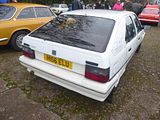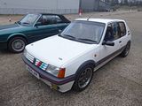Mindful of the success of the Golf GTi, in the class above, and how a small car with good handling could take more power, as the Mini Cooper had proved, Peugeot came up with the GTi in early 1984. The first models had a 1.6 litre XU5J engine, producing 105 PS, which was uprated in 1987 with a cylinder head with larger valves thus becoming XU5JA, which took the power output up to 115 bhp. Visually the car retained the good looks of the 3 door version of the regular models, but it featured plastic wheel arch extensions and trim, beefier front and rear bumper valances and judicious use of red badging and trim. The shell also underwent some minor changes, including larger wheel arches (to suit the larger wheels , and the suspension was redesigned and sat lower on the GTI with stiffer springs, different wishbones and a drop-linked anti-roll bar. Red was a dominant colour inside. The car was an instant hit. At the end of 1986, Peugeot followed up with a more potent model, the 1.9 GTi, whose XU9JA engine produced 128 PS. Internally the engine of this car and the 1.6 model are very similar, the main differences on 1.9 litre versions being the longer stroke, oil cooler, and some parts of the fuel injection system. The shorter stroke 1.6 litre engine is famed for being revvy and eager, while the 1.9 litre feels lazier and torquier. Outside the engine bay the main differences between the 1.6 GTi and the 1.9 GTi are half-leather seats on the 1.9 GTi vs. cloth seats and disc brakes all-round (1.9 GTi) vs. discs at the front and drum brakes at the back; as well as the 14-inch Speedline SL201 wheels on the 1.6 GTi vs. 15 inch Speedline SL299 alloys on the 1.9 GTi. The 205 is still often treated as a benchmark in group car tests of the newest GTI models or equivalent. Peugeot itself has never truly recreated this success in future GTI models, although they came very close with the highly regarded GTI-6 variant of the Peugeot 306.