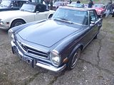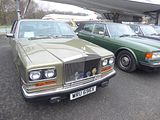 When new, the Silver Shadow was considered a big car, but looking at this one, it does not seem quite so massive any more.The Silver Shadow was produced from 1965 to 1976, and the Silver Shadow II from 1977 to 1980. Initially, the model was planned to be called “Silver Mist”, a natural progression from its predecessor Silver Cloud. The name was changed to “Silver Shadow” after realising that “Mist” is the German word for manure, rubbish, or dirt. The design was a major departure from its predecessor, the Silver Cloud; although several styling cues from the Silver Cloud were modified and preserved, as the automobile had sold well. The John Polwhele Blatchley design was the firm’s first single bow model. The original Shadow was 3 1⁄2 inches narrower and 7 inches shorter than the car it replaced, but nevertheless managed to offer increased passenger and luggage space thanks to more efficient packaging made possible by unitary construction. Aside from a more modern appearance and construction, the Silver Shadow introduced many new features such as disc rather than drum brakes, and independent rear suspension, rather than the outdated live axle design of previous cars. The Shadow featured a 172 hp 6.2 litre V8 from 1965 to 1969, and a 189 hp 6.75 ltire V8 from 1970 to 1980. Both powerplants were coupled to a General Motors-sourced Turbo Hydramatic 400 automatic gearbox, except on pre-1970 right-hand-drive models, which used the same 4-speed automatic gearbox as the Silver Cloud (also sourced from General Motors, the Hydramatic). The car’s most innovative feature was a high-pressure hydropneumatic suspension system licensed from Citroën, with dual-circuit braking and hydraulic self-levelling suspension. At first, both the front and rear of the car were controlled by the levelling system; the front levelling was deleted in 1969 as it had been determined that the rear levelling did almost all the work. Rolls-Royce achieved a high degree of ride quality with this arrangement. In 1977, the model was renamed the Silver Shadow II in recognition of several major changes, most notably rack and pinion steering; modifications to the front suspension improved handling markedly. Externally, the bumpers were changed from chrome to alloy and rubber starting with the late 1976 Silver Shadows. These new energy absorbing bumpers had been used in the United States since 1974, as a response to tightening safety standards there. Nonetheless, the bumpers on cars sold outside of North America were still solidly mounted and protruded 2 in less. Also now made standard across the board was the deletion of the small grilles mounted beneath the headlamps. Outside of North America, where tall kerbs and the like demanded more ground clearance, a front skirt was also fitted to the Silver Shadow II and its sister cars. In 1979 75 Silver Shadow II cars were specially fitted to commemorate the 75th anniversary of the company with the original red “RR” badges front and rear, pewter/silver paint, grey leather with red piping, scarlet red carpets, and a silver commemorative placard on the inside of the glove box door. 33 75th anniversary cars were designated for and shipped to the North American market. 8425 examples of the Shadow II were made, which, when added to the total of over 16,000 of the first generation cars made this the biggest selling Rolls Royce of all time. There were Series 1 and Series 2 cars here.