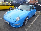 Replacing the 964, the 993 models were first seen in October 1993, with production starting a few weeks later. Its arrival marked the end of air-cooled 911 models. The 993 was much improved over, and quite different from its predecessor. According to Porsche, every part of the car was designed from the ground up, including the engine and only 20% of its parts were carried over from the previous generation. Porsche refers to the 993 as “a significant advance, not just from a technical, but also a visual perspective.” Porsche’s engineers devised a new light-alloy subframe with coil and wishbone suspension (an all new multi-link system), putting behind the previous lift-off oversteer and making significant progress with the engine and handling, creating a more civilised car overall providing an improved driving experience. The 993 was also the first 911 to receive a six speed transmission. The 993 had several variants, as its predecessors, varying in body style, engines, drivetrains and included equipment. Power was increased by the addition of the VarioRam system, which added additional power, particularly in the mid-ranges, and also resulted in more throttle noise at higher revs; as a consequence, resulted in a 15% increase in power over its predecessor. The external design of the Porsche 993, penned by English designer Tony Hatter, retained the basic body shell architecture of the 964 and other earlier 911 models, but with revised exterior panels, with much more flared wheel arches, a smoother front and rear bumper design, an enlarged retractable rear wing and teardrop mirrors. A major change was the implementation of all alloy multi-link rear suspension attached to an alloy sub frame, a completely new design derived from the 989, a four-door sedan which never went into production. The system later continued in the 993’s successor, the 996, and required the widening of the rear wheel arches, which gave better stability. The new suspension improved handling, making it more direct, more stable, and helping to reduce the tendency to oversteer if the throttle was lifted during hard cornering, a trait of earlier 911s. It also reduced interior noise and improved ride quality. The 993 was the first generation of the 911 to have a 6-speed manual transmission included as standard; its predecessors had 4 or 5-speed transmissions. In virtually every situation, it was possible to keep the engine at its best torque range above 4,500 rpm. The Carrera, Carrera S, Cabriolet and Targa models (rear wheel drive) were available with a “Tiptronic” 4-speed automatic transmission, first introduced in the 964. From the 1995 model year, Porsche offered the Tiptronic S with additional steering wheel mounted controls and refined software for smoother, quicker shifts. Since the 993’s introduction, the Tiptronic is capable of recognising climbs and descents. The Tiptronic equipped cars suffer as compared to the manual transmission equipped cars in both acceleration and also top speed, but the differences are not much notable. Tiptronic cars also suffered a 55 lb (25 kg) increase in weight. The 993’s optional all wheel drive system was refined over that of the 964. Porsche departed from the 964’s setup consisting of three differentials and revised the system based on the layout from its 959 flagship, replacing the centre differential with a viscous coupling unit. In conjunction with the 993’s redesigned suspension, this system improved handling characteristics in inclement weather and still retained the stability offered by all wheel drive without having to suffer as many compromises as the previous all-wheel-drive system. Its simpler layout also reduced weight, though the four wheel drive Carrera 4 weighs 111 lb (50 kg) more than its rear wheel drive counterpart (at 3,131 lb (1,420 kg) vs. 3,020 lb (1,370 kg)). Other improvements over the 964 include a new dual-flow exhaust system, larger brakes with drilled discs, and a revised power steering. A full range of models arrived before the arrival of the 996 generation in 1998.