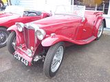 The post-war TC was replaced in 1950 by the TD, which combined the TC’s drivetrain, a modified hypoid-geared rear axle, the MG Y-type chassis, a familiar T-type style body and independent suspension using coil springs from the MG Y-type saloon. A 1950 road-test report described as “most striking” the resulting “transformation … in the comfort of riding”. Also lifted from the company’s successful 1¼-litre YA saloon for the TD was the (still highly geared) rack and pinion steering. In addition the TD featured smaller 15-inch disc type road wheels, a left-hand drive option and standard equipment bumpers and over-riders. The car was also 5 inches wider with a track of 50 inches. For the driver the “all-weather protection” was good by the standards of the time. For night driving, instrument illumination was “effective but not dazzling, by a pale green lighting effect”. There was still no fuel gauge, but the 12 gallon tank capacity gave a range between refuelling stops of about 300 miles and a green light on the facia flashed a “warning” when the fuel level was down to about 2½ gallons. In 1950 the TD MkII Competition Model was introduced, produced alongside the standard car, with a more highly tuned engine using an 8.1:1 compression ratio giving 57 bhp at 5,500 rpm. The higher compression ratio engine was offered with export markets in mind, and would not have been suitable for the UK, where thanks to the continued operation of wartime fuel restrictions, buyers were still limited to 72 octane “Pool petrol”. The TD MkII also featured twin fuel pumps, additional Andrex dampers, and a higher ratio rear-axle. Nearly 30,000 TDs had been produced, including about 1700 Mk II models, when the series ended in 1953 with all but 1656 exported, 23,488 of them to the US alone.