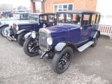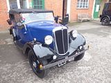 This is a 1933 Austin 12/4 Harley. The Austin Light Twelve-Four is a car that was produced by Austin from 1933 until 1939. It was replaced in 1939 by a completely new car also called the Austin 12 which kept the same engine. The “12” in the name referred to the taxation horsepower, a British rating which controlled the annual taxation payable to use the car on the road. Austin introduced this new car in September 1932. It was made by fitting a 1535 cc side-valve, four-cylinder engine with 24 bhp output into the same chassis as they had been making since late 1930 for their six-cylinder 12/6 which was also in the same 12 hp class. This new four cylinder engine was coupled to a four-speed “crash” gearbox at first, but a new transmission with synchromesh on third and top speed appeared in 1934 and then also on second in 1935. The chassis was very conventional, with semi-elliptic leaf springs on all wheels and rigid axles front and rear. Wire wheels were fitted until 1937 when they were replaced with pressed steel ones. At launch there was a choice of a pressed steel six-light (three windows on each side) saloon called the Harley and a two-seat tourer. A second saloon style with a boot, the Ascot, was added in 1934 and the Harley was dropped in 1935. In the same year the chromium-plated radiator shell was replaced by one painted in body colour. The very early cars had their side lights mounted on the scuttle, but these soon moved to the tops of the wings. Significant alterations were made in 1936 and the cars continued until replaced by the New Twelve in 1939.