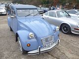 There is a long history to this car, but it was only really with the relaunch of the model to the UK market in 1974 when interest here took off. Sales of the 2CV were reinvigorated by the 1974 oil crisis. The 2CV after this time became as much a youth lifestyle statement as a basic functional form of transport. This renewed popularity was encouraged by the Citroën “Raid” intercontinental endurance rallies of the 1970s where customers could participate by buying a new 2CV, fitted with a “P.O.” kit (Pays d’Outre-mer—overseas countries), to cope with thousands of miles of very poor or off-road routes. Because of new emission standards, in 1975 power was reduced from 28 hp to 25 hp. The round headlights were replaced by square ones, adjustable in height. A new plastic grille was fitted. In July 1975, a base model called the 2CV Spécial was introduced with the 435 cc engine. Between 1975 and 1990 under the name of AZKB “2CV Spécial” a drastically reduced trim basic version was sold, at first only in yellow and with an untreated black roof. Slimmer bumpers with stick-on tape rather than plastic strips and no overriders were fitted. It also had the earlier round headlights, last fitted in 1974. In order to keep the price as low as possible, Citroën removed the third side window, the ashtray, and virtually all trim from the car, while that which remained was greatly simplified, such as simple vinyl-clad door cards and exposed door catches rather than the plastic moulded trims found on the 2CV Club. Other 2CVs shared their instruments with the Dyane and H-Van but the Spécial had a much smaller square speedometer also incorporating the fuel gauge, originally fitted to the 2CV in the mid-1960s and then discontinued. The model also had a revised (and cheaper-to-make) plastic version of the 1960s two-spoke steering wheel instead of the one-spoke item from the Dyane, as found on the Club. From the 1978 Paris Motor Show the Spécial regained third side windows, and was available in red and white; beginning in mid-1979 the 602 cc engine was installed.[58] In June 1981 the Spécial E arrived; this model had a standard centrifugal clutch and particularly low urban fuel consumption. By 1980 the boost to 2CV sales across Europe delivered by the 1973 Energy Crisis had begun to wear off and there was a whole new generation of superminis and economy cars available from European and Japanese manufacturers. Citroën itself now had the Visa available. Peak annual production for 2CVs was reached in 1974 (163,143 cars) but by 1980 this had dropped to 89,994 and by 1983 would stand at just 59,673. Nonetheless the car remained profitable for PSA to produce on account of its tooling and set-up costs being amortised many years before and it could share major parts with more popular or profitable models such as the Visa and Acadiane. As part of this rationalisation in 1981 the Spécial was fitted as standard with the 602 cc engine, although the 435 cc version remained available to special order in some European countries until stocks were used up. Also in 1981 a yellow 2CV6 was driven by James Bond (Roger Moore) in the 1981 film For Your Eyes Only. The car in the film was fitted with the flat-4 engine from a Citroën GS which more than doubled the power. In one scene the ultra light 2CV tips over and is quickly righted by hand. Citroën launched a special edition 2CV “007” to coincide with the film; it was fitted with the standard engine and painted yellow with “007” on the front doors and fake bullet hole stickers. In 1982 all 2CV models got inboard front disc brakes, which also used LHM fluid instead of conventional brake fluid—the same as was found in the larger Citroën models with hydropneumatic suspension. In late 1986 Citroën introduced the Visa’s replacement, the AX. This was widely regarded as a superior car to the Visa and took many of the remaining 2CV sales in France following its introduction. From 1986 to 1987 2CV production fell by 20 per cent to just 43,255 cars. Of that total over 12,500 went to West Germany and 7212 went to the UK. France was now the third-largest market for 2CVs, taking 7045 cars that year. It was estimated that Citroën was now selling the 2CV at a loss in the French market, but that it was still profitable in other European countries. The peak of 2CV sales in the United Kingdom would be reached in 1986, thanks to the introduction of the popular Dolly special edition (see below)—7520 new 2CVs were registered in Britain that year. This year saw the discontinuation of the Club, which was by then the only 2CV model to retain the rectangular headlamps. This left the Spécial as the only regular 2CV model, alongside the more fashion-orientated Dolly, Charleston and the other special editions. In 1988, production ended in France after 40 years. The factory at Levallois-Perret had been the global centre for 2CV production since 1948 but was outdated, inefficient and widely criticised for its poor working conditions. The last French-built 2CV was made on February 25. In recognition of the event, the last 2CV built at Levallois was a basic Spécial in a non-standard grey colour—the same shade as worn by the very first 2CVs. Production of the 2CV would continue at the smaller-capacity but more modern Mangualde plant in Portugal. In 1989 the first European emission standards were introduced voluntarily by a number of European nations, ahead of the legal deadline of July 1992. This meant that the 2CV was withdrawn from sale in Austria, Denmark, Italy, Spain, Sweden, Switzerland and The Netherlands—the latter one of the car’s largest remaining markets. That year the three leading markets for the 2CV were West Germany (7866), France (5231) and the UK (3200). The last 2CV was built at Mangualde on 27 July 1990—it was a specially-prepared Charleston model. Only 42,365 2CVs were built in Portugal in the two years following the end of French production. Port