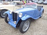 The first of the T Series sports cars appeared in 1936, to replace the PB. Visually they were initially quite similar, and as was the way in the 1930s, updates came frequently, so both TA and TB models were produced before global hostilities caused production to cease. Whilst the TC, the first postwar MG and launched in 1945, was quite similar to the pre-war TB, sharing the same 1,250 cc pushrod-OHV engine, it had a slightly higher compression ratio of 7.4:1 giving 54.5 bhp at 5200 rpm. The makers also provided several alternative stages of tuning for “specific purposes”. It was exported to the United States, even though only ever built in right-hand drive. The export version had slightly smaller US specification sealed-beam headlights and larger twin rear lights, as well as turn signals and chrome-plated front and rear bumpers. The body of the TC was approximately 4 inches wider than the TB measured at the rear of the doors to give more cockpit space. The overall car width remained the same resulting in narrower running boards with two tread strips as opposed to the previous three. The tachometer was directly in front of the driver, while the speedometer was on the other side of the dash in front of the passenger. 10,001 TCs were produced, from September 1945 to Nov. 1949, more than any previous MG model. It cost £527 on the home market in 1947.