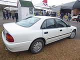The Rover 600 is a medium sized executive car range that was produced between 1993 and 1999. The Rover 600 exterior was designed by Rover, and was a complete re-skin of the European Honda Accord, also built in the UK by Honda in Swindon. The core structure and vast majority of the engineering content was sourced from Honda but the vehicles were designed at the same time, with a small Rover team on-site in Japan. Colour and trim derivatives were also used to help separate the Rover from the Honda in the marketplace. It was generally said at the time that the Rover was a far better looking car than the Honda, and indeed many of the pre-launch clinics had given the car very high marks indeed for the elegance of its design. This was an example of partnering in the right way, as mechanically, the 600 relied lots of Honda, with the 1.8, 2.0 and 2.3-litre straight-4 petrol engines were all provided by the Japanese. All these were praised for their refinement and efficiency. The 2.0-litre turbodiesel Rover L-Series engine and turbocharged T-Series engines which joined the range some months after launch were developed by Rover, evolutions of units already available elsewhere in the Rover model range. The 620ti, the Turbo model, was launched in May 1994 and this was the most exciting car in the range. It had a turbocharged, intercooled, 16-valve, twin-cam 2.0-litre T series engine, a top speed of 143 mph and a 0-60 mph time of 7 seconds, thanks to 197 bhp and 174 lb/ft of torque. The 620ti also had uprated suspension, dark half-leather upholstery, and a set of six-spoke 16 inch alloy wheels. Autocar magazine had an example on a long term test and found it to be as quick in the mid-range as a Ford Sapphire 2.0i Cosworth following tests at Millbrook Proving Ground. The 600’s interior included wood and chrome trim, as well as relatively high equipment levels, although rear legroom was criticised as rather constrained. The interior was similar to the Japanese-built Honda Ascot Innova, except with a few cosmetic changes. Carpet was also not evident along the bottom trim of the dashboard, although it did feature there on the Innova. The Honda-derived chassis was reported to give a comfortable but unsporting ride. The 600 was available in a number of different trims. All models had power-assisted steering (PAS), electric front windows, remote central locking with alarm and immobiliser and tinted windows. The entry level 618i cars had unpainted bumpers initially which looked very cheap. The Si had split rear seats, Si Auto and above got a sunroof. SLi trim added electric rear windows and wooden door trim; GSi models received 15″ multispoke alloys and full leather trim. From 1994 all cars had a driver’s airbag. The 623iS had half leather trim and a small lip spoiler on its boot. The ti featured a set of 16″ six spoke alloys with uprated suspension, ‘Torsen’ gearbox and a dark half leather interior. Given the Rover’s equipment, prices were reasonably competitive in the large family car segment and considerably lower than the price of such compact executive cars such as the BMW 3 Series and Audi A4. The car had a mixed time with the press, with initially positive reports turning quite damning quite quickly, for no really discernible reason., The car was well built and proved reliable, even the ones with the British engines! Production ceased in the Spring of 1999; when the car, along with the Rover 800 was replaced with the retro-styled Rover 75 developed under BMW’s stewardship. It was good to see one example here, and in nice condition, as this model is often conspicuous by its absence at events like this. Perhaps the tide has turned and the car is now old enough for youngtimer classic status?