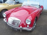 The MGA replaced the long running T Series sports cars and presented a complete styling break from MG’s earlier sports cars. Announced on 26 September 1955, the car was officially launched at the Frankfurt Motor Show. A total of 101,081 units were sold through the end of production in July 1962, the vast majority of the 58.750 cars made were exported. Only 5869 cars were sold on the home market, the lowest percentage of any British car. It was replaced by the MGB. The MGA design dates back to 1951, when MG designer Syd Enever created a streamlined body for George Philips’ TD Le Mans car. The problem with this car was the high seating position of the driver because of the limitations of using the TD chassis. A new chassis was designed with the side members further apart and the floor attached to the bottom rather than the top of the frame sections. A prototype was built and shown to the BMC chairman Leonard Lord. He turned down the idea of producing the new car as he had just signed a deal with Donald Healey to produce Austin-Healey cars two weeks before. Falling sales of the traditional MG models caused a change of heart, and the car, initially to be called the UA-series, was brought back. As it was so different from the older MG models it was called the MGA, the “first of a new line” to quote the contemporary advertising. There was also a new engine available, therefore the car did not have the originally intended XPAG unit but was fitted with the BMC corporate B-Series type allowing a lower bonnet line. The MGA convertible had no exterior door handles, however the coupe did. It was a body-on-frame design and used the straight-4 1489cc “B series” engine from the MG Magnette saloon driving the rear wheels through a 4-speed gearbox. Suspension was independent with coil springs and wishbones at the front and a rigid axle with semi-elliptic springs at the rear. Steering was by rack and pinion. The car was available with either wire-spoked or steel-disc road wheels. The 1489 cc engine fitted with twin H4 type SU Carburettors produced 68 hp at first, but was soon uprated to 72 hp. Lockheed hydraulic drum brakes were used on all wheels. A high-performance Twin-Cam model was added for 1958. It used a high-compression (9.9:1 later 8.3:1) DOHC aluminium cylinder head version of the B-Series engine producing 108 hp. Due to detonation problems, a 100 bhp low-compression version was introduced later. Four-wheel disc brakes by Dunlop were fitted, along with Dunlop peg drive knock-off steel wheels similar to wheels used on racing Jaguars, unique to the Twin-Cam and “DeLuxe” MGA 1600 and 1600 MkII roadsters. These wheels and chassis upgrades were used on a small number of the “DeLuxe” models built after Twin-Cam production came to a halt. Aside from the wheels, the only outside identifier was a “Twin-Cam” logo near the vent aside the bonnet. A careful look at the rear wheel vents would also reveal another feature unique to Twin-Cam and DeLuxe: those 4 wheel Dunlop disc brakes . The temperamental engine was notorious for warranty problems during the course of production, and sales dropped quickly. The engine suffered from detonation and burnt oil. Most of the problems with the Twin-Cam engine were rectified with the low-compression version, but by then the damage had been done. Many restored Twin-Cams are running more reliably today than they ever did during production. The Twin-Cam was dropped in 1960 after 2,111 had been produced. Production ended in April 1960, but had slowed to a trickle long before. In May 1959 the standard cars also received an updated engine, now at 1588 cc producing 79.5 bhp . At the front disc brakes were fitted, but drums remained in the rear. Externally the car was very similar to the 1500 with differences including: amber or white (depending on market) front turn indicators shared with white parking lamps, separate stop/tail and turn lamps in the rear, and 1600 badging on the boot and the cowl. 31,501 of these were produced in less than three years. A number of 1600 De Luxe versions were produced with leftover special wheels and four-wheel disc brakes of the departed Twin-Cam, or using complete modified Twincam chassis left redundant by the discontinuance of that model. Seventy roadsters and 12 coupés were built. The engine size was increased again to 1622 cc by increasing the bore from 75.4 mm to 76.2 mm for the 1961 Mark II MGA. The cylinder head was also revised with larger valves and re-engineered combustion chambers. Horsepower increased to 90 bhp. It also had a higher ratio 4:1 rear axle, which made for more relaxed high-speed driving. An inset grille and Morris Mini tail lamps appearing horizontally below the deck lid were the most obvious visual changes. 8,198 Mark II roadsters and 521 coupés were built. As with the 1600 De Luxe, there were also some Mark II De Luxe versions; 290 roadsters and 23 coupés were produced.