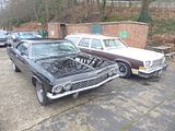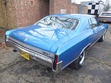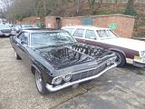 Redesigned in 1965, the Impala set an all-time industry annual sales record of more than 1 million units in the United States. All new full-size Chevrolets eschewed the “X” frame for a full-width perimeter frame, a new body that featured curved, frameless side glass (for pillarless models), sharper angled windshield with newly reshaped vent windows, and redesigned full-coil suspension. In 1965, Chevrolet introduced a new luxury package for the Impala four-door hardtop, called “Caprice” and coded as RPO Z18. Caprices received tufted upholstery, wood grained accents on the dashboard and specialty pulls on the insides of the doors. This “halo” model also featured the “spinner” wheel covers from the Impala SS, with the “SS” logo centers replaced by a Chevrolet “bowtie” emblem. The Super Sport’s blackout rear trim strip below the triple taillights was also used, with the “Impala SS” emblem replaced by a large “Caprice by Chevrolet” badge. The Impala block lettering on each front fender was replaced with “Caprice” script. The Caprice package was reintroduced as the Chevrolet Caprice Custom in 1966, taking the top position in the full-size Chevrolet lineup. Engine choices included the inline six-cylinder as well as the small-block and big-block V8s. A new three-range Turbo Hydra-Matic automatic transmission was optional for 396 cu in (6.5 L) V8. The old 409 cu in (6.7 L) “W” engine was discontinued early in the 1965 model year, so early-production 1965s got the 409, as well as 1/10 of 1% had the 396 CID big-block. Other later-built cars had the 396 cu in (6.5 L) as the big-block option. Two-speed Powerglide, as well as 3- and 4-speed manual transmissions were available. As with previous years, Impalas featured more chrome trim inside and out, with pleated tufted upholstery and door panels. The Impala would be the #2-selling convertible in the US in 1966, with 38,000 sold; it was beaten by the Mustang by almost 2:1. 1966 saw a pair of enlarged big-block V8s featuring 427 cu in (7.0 L). The RPO L36 was rated at 385 hp, the L72 at 425 hp. The L72 was only available with a manual transmission. The 1966 Impala was a mild restyle of the 1965, featuring a new instrument panel, grille, wheel covers (except for SS models), and rectangular taillights that wrapped around to the side of the quarter panels. Standard features now included lap belts front and rear, reverse lamps, day/night rearview mirror, and a padded dashboard. The 1967 model was redesigned with enhanced Coke bottle styling that featured Corvette-inspired front and rear fender bulges. The curves were the most pronounced with the 1967–1968 models. In keeping with federal regulations, safety features were built into Impalas during the 1967 and 1968 model years, including a fully collapsible energy-absorbing steering column, side marker lights, and shoulder belts for closed models. The L72 engine was not available in 1967, but the L36 Turbo-Jet V8 was optional. GM adopted a new lock system for all models, replacing the previous system that had been in use since 1936 with letter-coded keys that changed each year. The 1968 model was facelifted with a new front end. The new rear bumper housed triple “horseshoe” shaped taillights. 1968 also saw a new Impala model, the Custom Coupe. This two-door hardtop featured the same formal roofline as the Caprice Coupe. It was successful and would be continued through 1976. The L72 “427 Turbo-Jet” engine was once again returned to the option list, a solid-lifter V8 rated at 425 hp. It would continue to be available for both 1968 and 1969, replaced by the Turbo-Jet 454 for 1970. The 1969 Impala and other full-sized Chevrolets got new slab-sided bodies with a small “upsweep” at the rear quarter window, giving them a more formal appearance. It retained the 119-inch wheelbase from previous models. New front bumpers that wrapped around the grille and horizontal taillights were in the rear bumper. The hardtop Sport Coupe got a new notchback roofline, replacing the “fastback” C-pillar from 1967 to 1968. Ventless front windows were used on all models. Chevrolet had a rudimentary “power vent” system featuring vents in the instrument panel. The ignition switch was moved from the instrument panel to the steering column, and when the key was removed, the steering wheel and shift lever were locked. The 1969 model year Impala production topped Caprice production by 611,000 units. Impala station wagons were renamed Kingswood, a name which would continue through 1972. The similar 1970 Impala got a minor facelift featuring a more conventional under the grille bumper replacing the wrap-around unit used in 1969 along with new triple vertical taillights in the rear bumper. Canadian buyers got the choice of a lower priced companion to the Impala Sport Coupe, the Bel Air Sport Coupe, which used the same body but featured Bel Air trim.